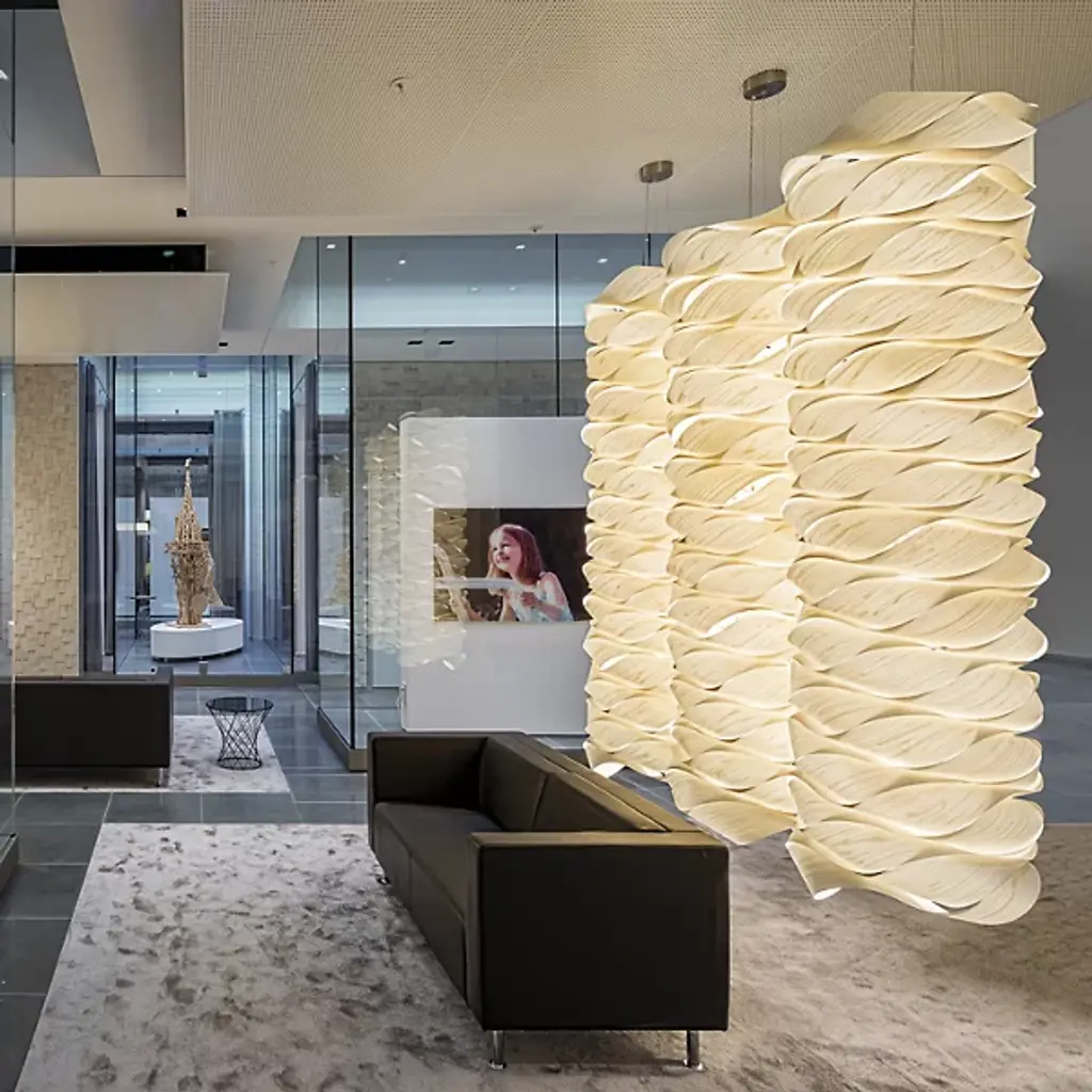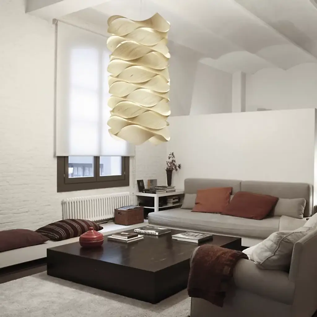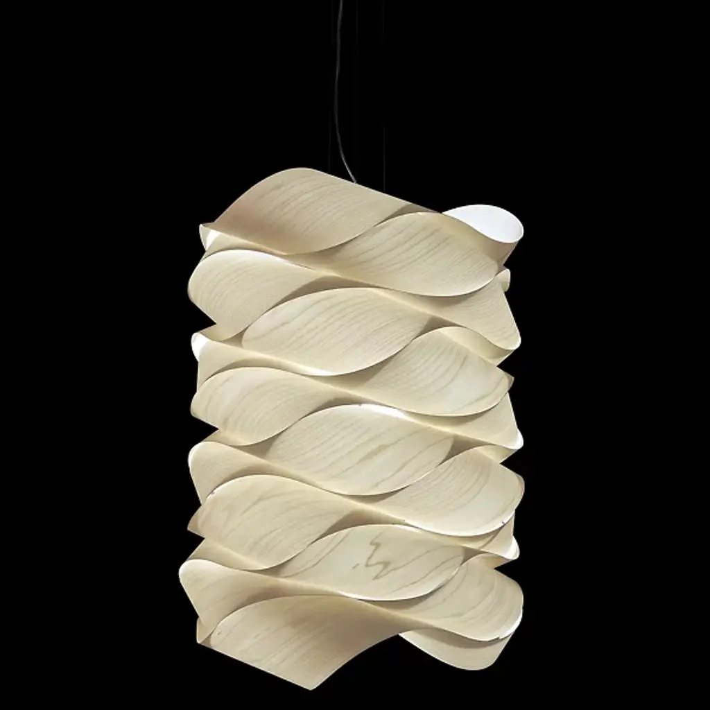 A delicate piece with innovative extravagance. The LZF Link Chain Suspension captivates a room, using a smooth, fluid structure to disperse ambient light while providing a central statement piece. An elegant Wood veneer creates an infinite, twisting structure, supported by a strong Steel frame. The beautiful Wood comes from forests certified by the FSC, and an eco-friendly treatment protects the material from scratches and markings. While the veneers hold a firm shape, their thin design keeps the grain visible as light pours through. A cylinder of illumination with incredible depth, texture and detail, this powerful statement piece enhances the lighting and style of whichever room you choose.