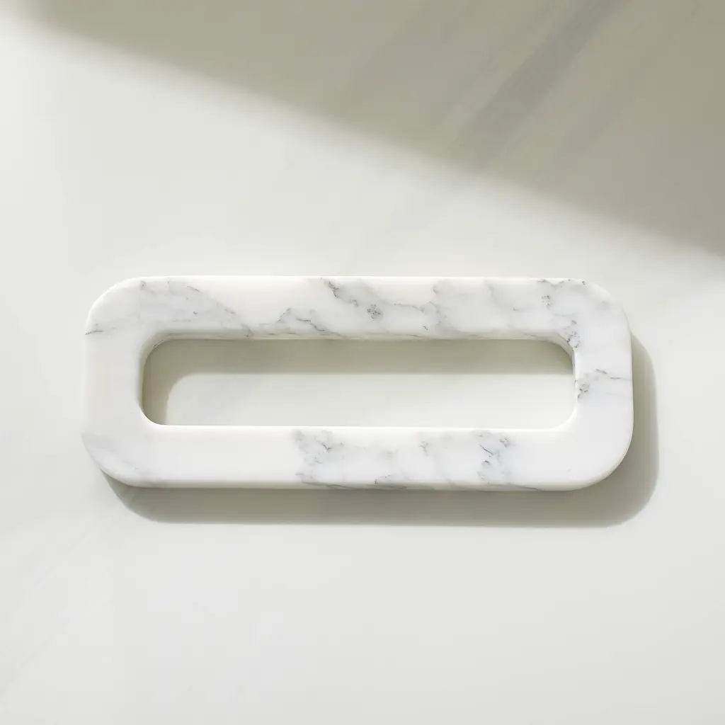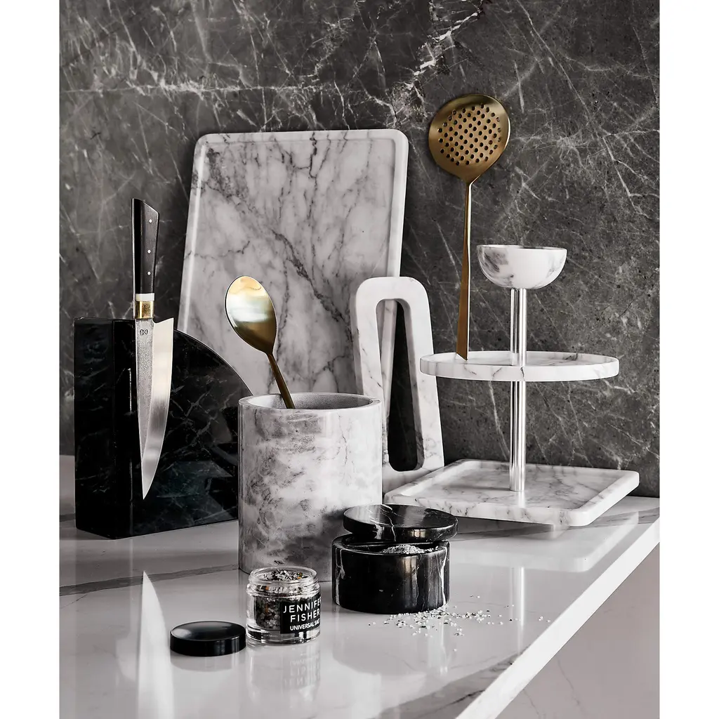 Honed white Arabascato marble is imported from Italy and hand-carved into trivet modeled after Jennifer Fisher's iconic chain link jewelry. As Jennifer herself puts it, "Why ruin your table when you can use this chic marble trivet?" CB2 exclusive.