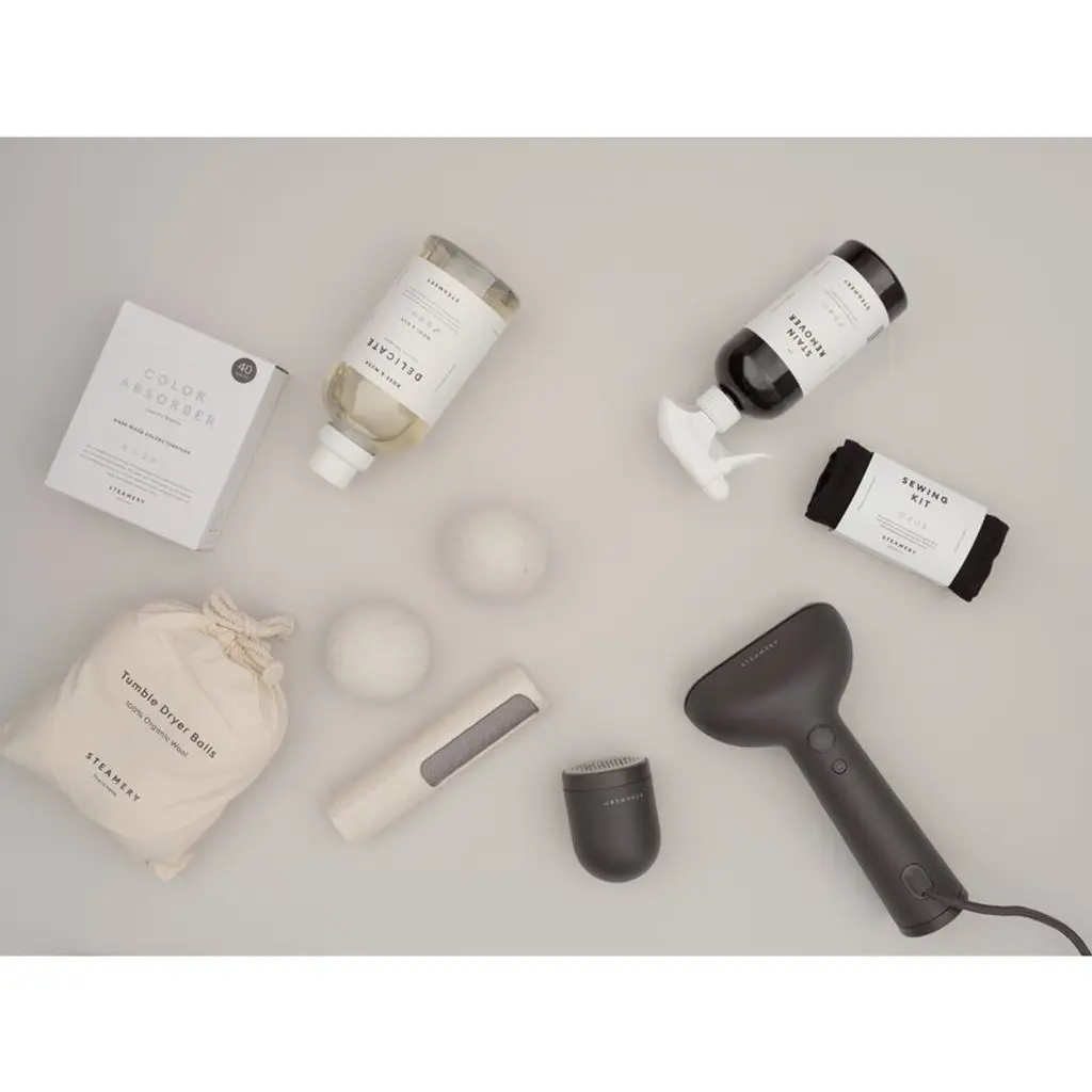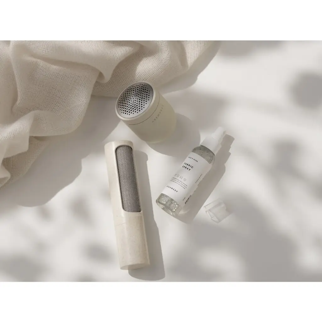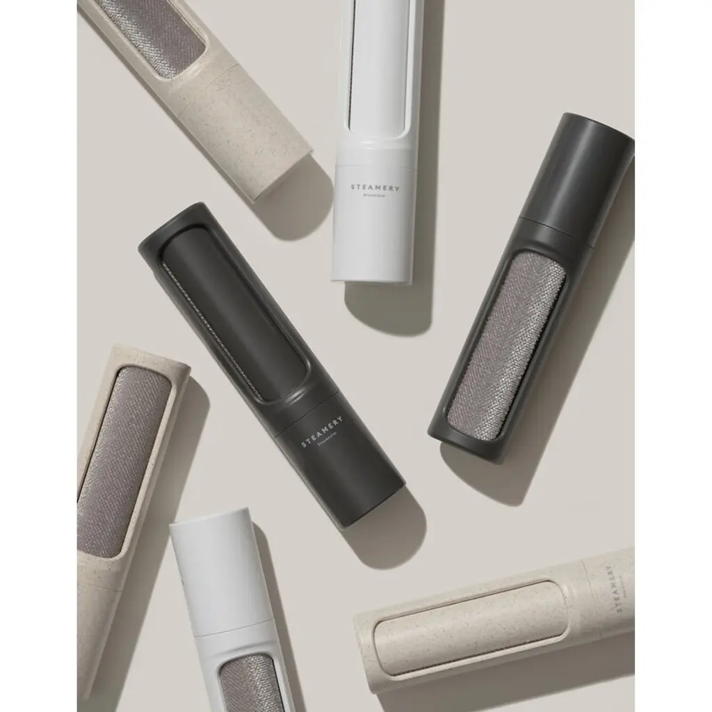 Steamery's lint brush offers a sustainable alternative for a traditional tape lint roller: it picks up hair, dust and lint without extra waste or leaving glue residue on your garments or furniture. Use the brush clockwise to allow its polyester weave bristle to lift and catch shallow dirt off the textiles, then twist the handle a few times and push the lid on top to clean and empty the brush. The lint brush can be used on all textiles and is easy to take with you also on trips and travels.