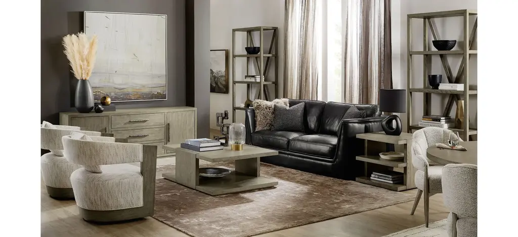 With the aura of a rustic mountain cottage, the Linville Falls Cocktail Table is crafted with pine veneers and finished in mink, a soft smoked gray.