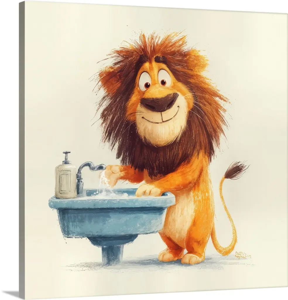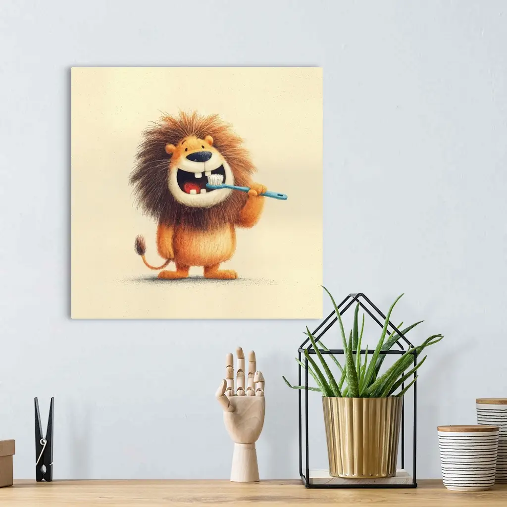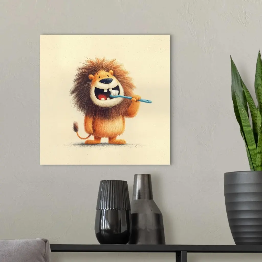 illustrated colored penicil drawing, pixar, simple, flat, fun colorful design for a theme. happy cartoon lion brushing his teeth, clean vector illustration, pixar style --sref https://s.mj.run/jhzdDb7ZFMM https://s.mj.run/Z4OSXZ1zx0w --v 7 Job ID: f644a616-f04b-4fd3-bd78-4d764cceabb7