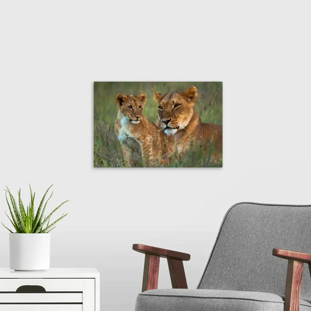 Lioness with cub at dusk, Ol Pejeta Conservancy, Kenya.