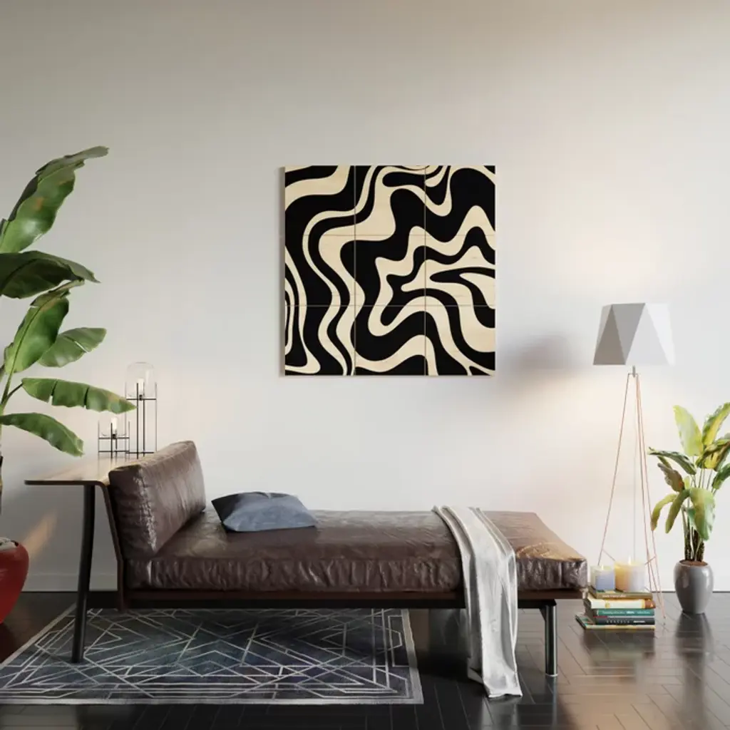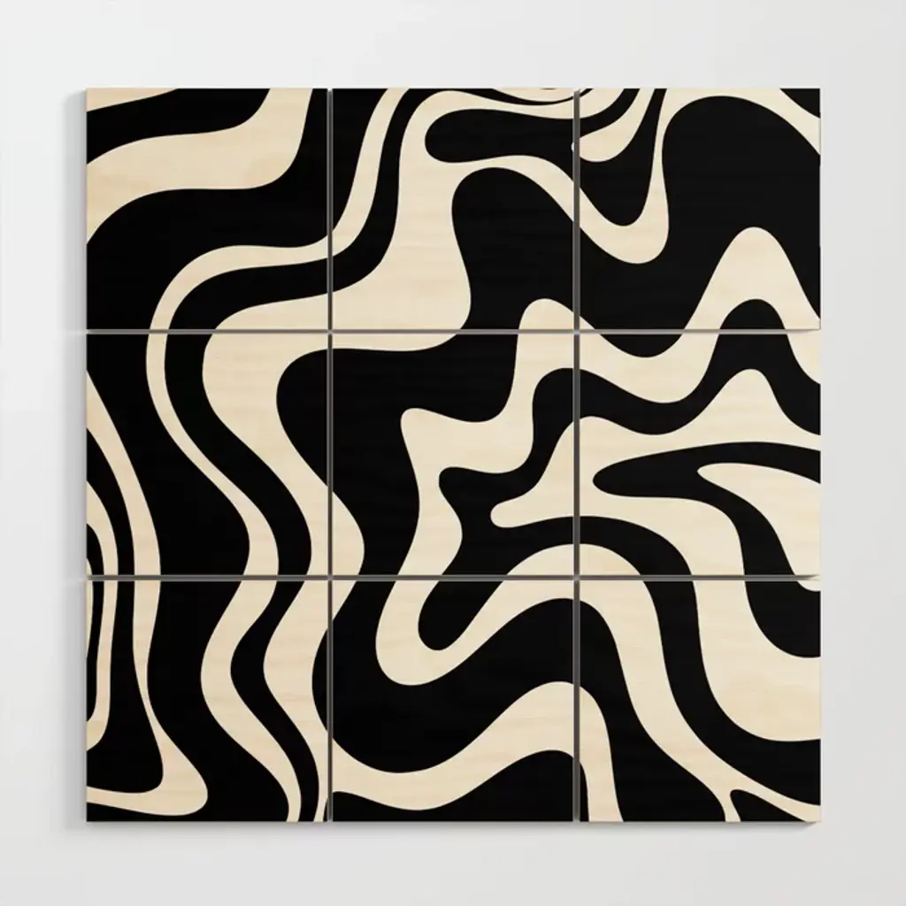 Liquid Swirl Abstract Pattern In Black And White Wood Wall Art