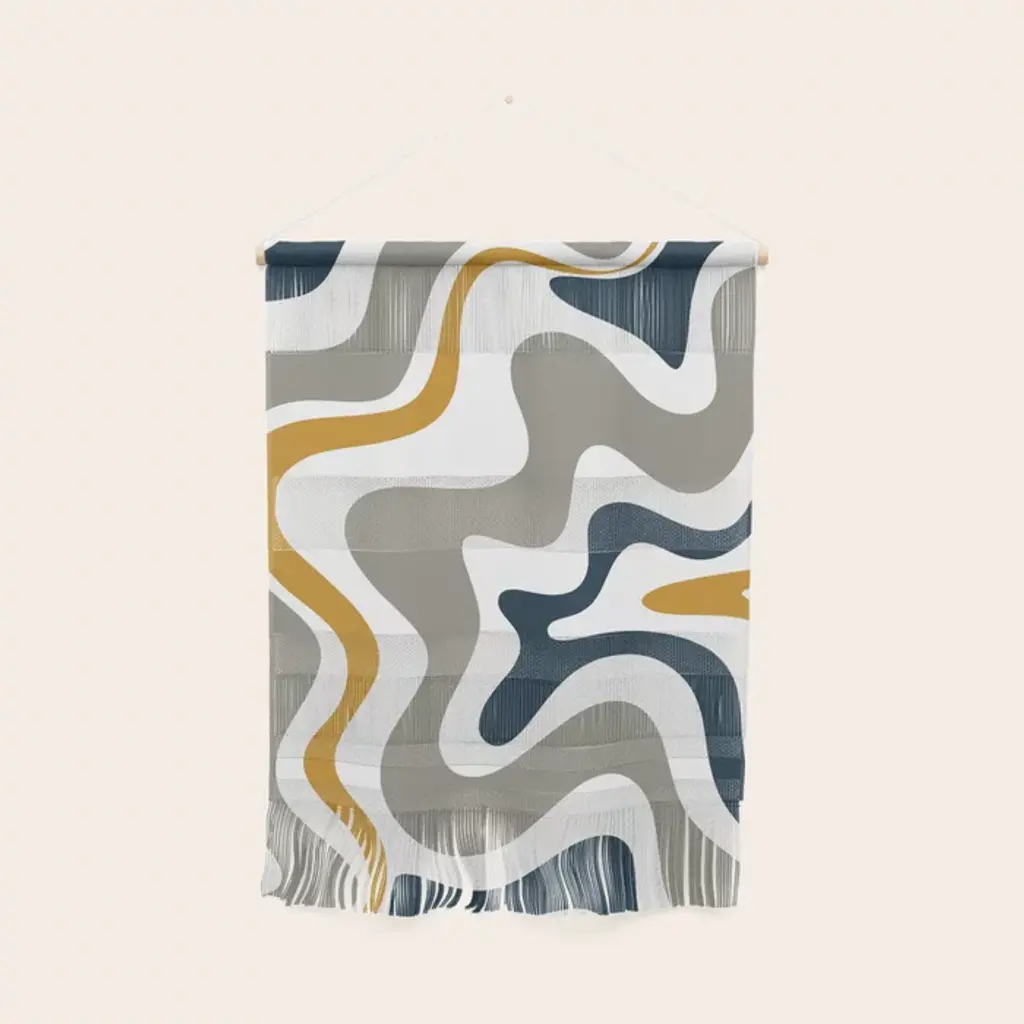 Liquid Swirl Retro Abstract Pattern Blue Ochre Rust Taupe Wall Hanging