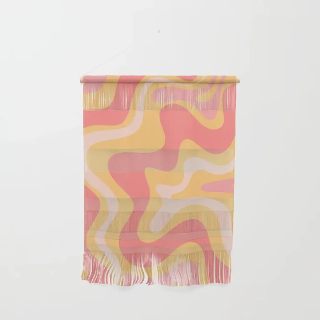 Liquid Swirl Retro Abstract Pattern In Mid Mod Mustard And Beige Wall Hanging