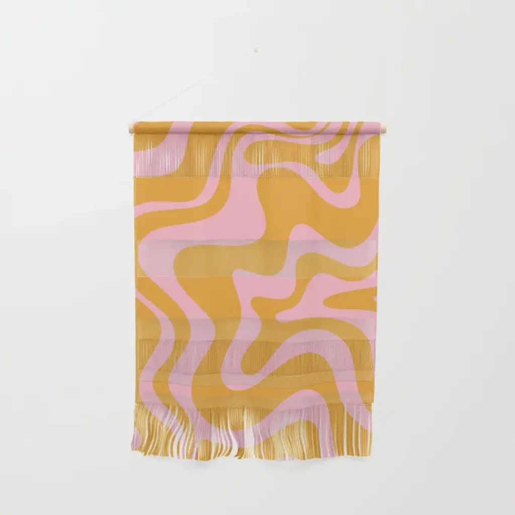 Liquid Swirl Retro Abstract Pattern In Mustard Orange And Light Blush Pink Wall Hanging