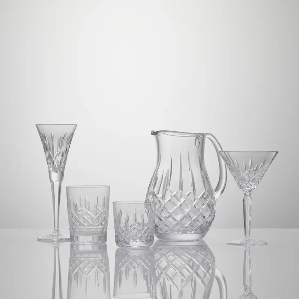 Transform any toast into a grand occasion with the Lismore Toasting Flute Pair and bring flair to Champagne, spumante, or any celebratory cocktail. Dazzling on the eye, the elegant flared neck and beautifully adorned Lismore pattern on these crystal flutes produce a striking visual at parties, celebrations, and even the most casual of occasions, shining with the clarity and unrivaled brilliance that’s synonymous with the finest crystal. Stylishly presented in an elevated gray gift box embossed on the border with the beloved Lismore pattern in black foil: a perfect gift for any occasion.