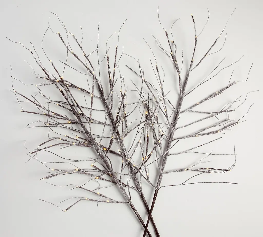 Aglow in festive lights, these faux twigs are a bright idea for effortless holiday decorating. With true-to-life details and a dusting of frost, they can be placed in a tall vase for a simple yet stunning arrangement or worked into existing decor to add subtle illumination.