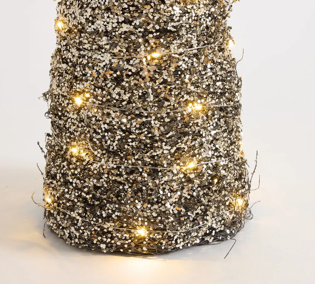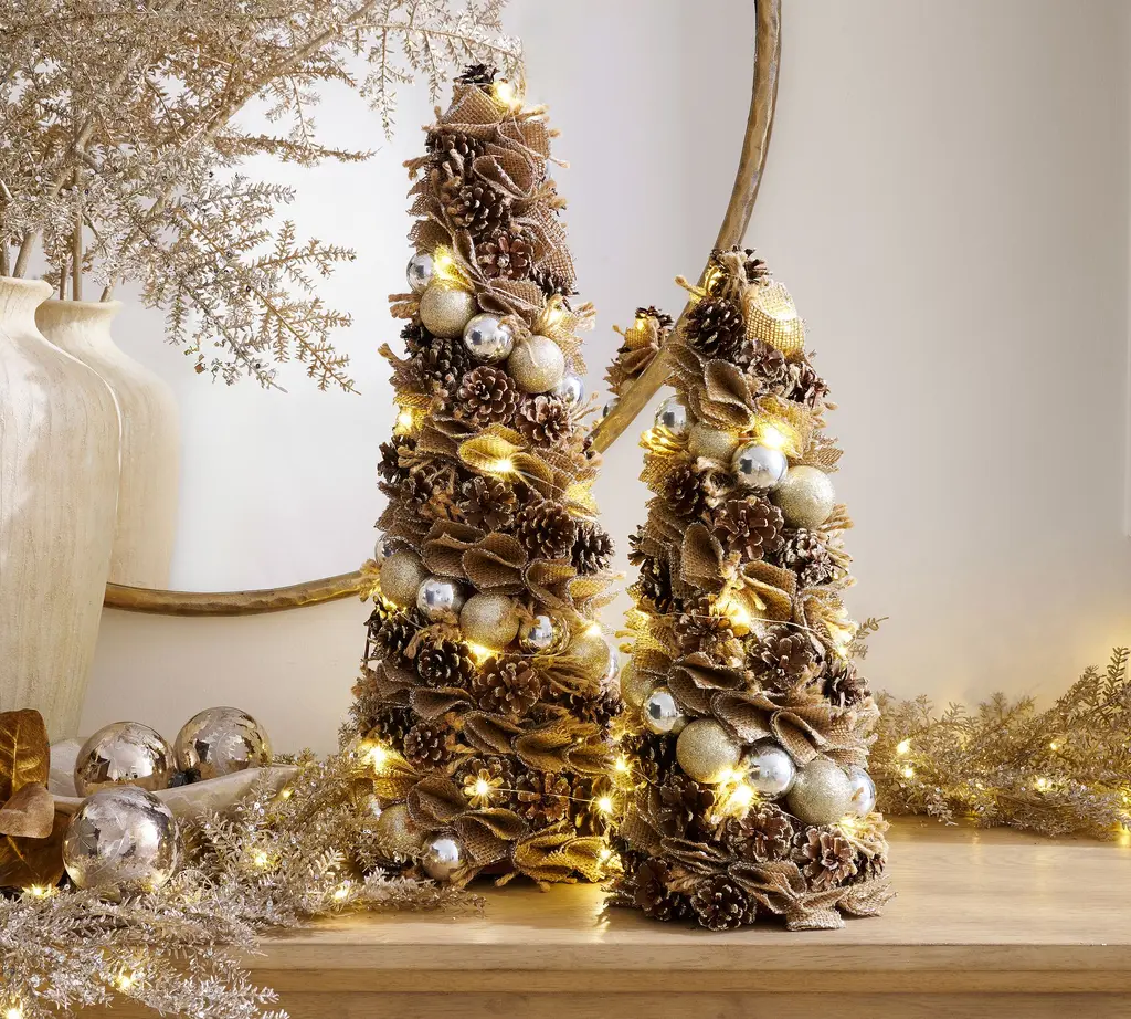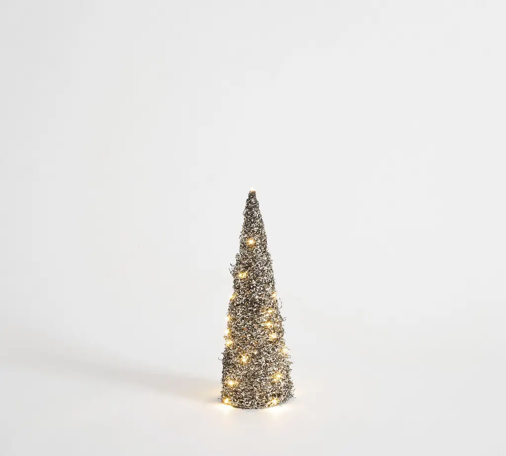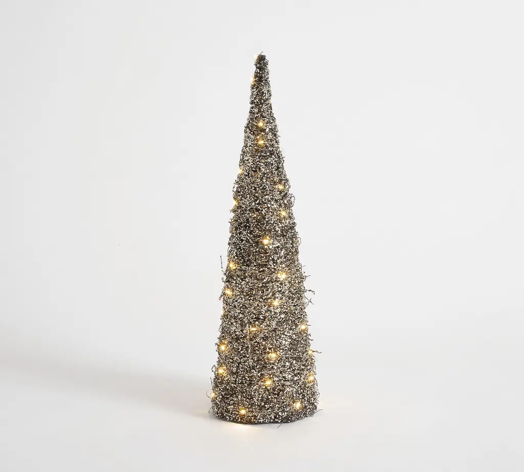 Lit Gold Glitter Cone Trees