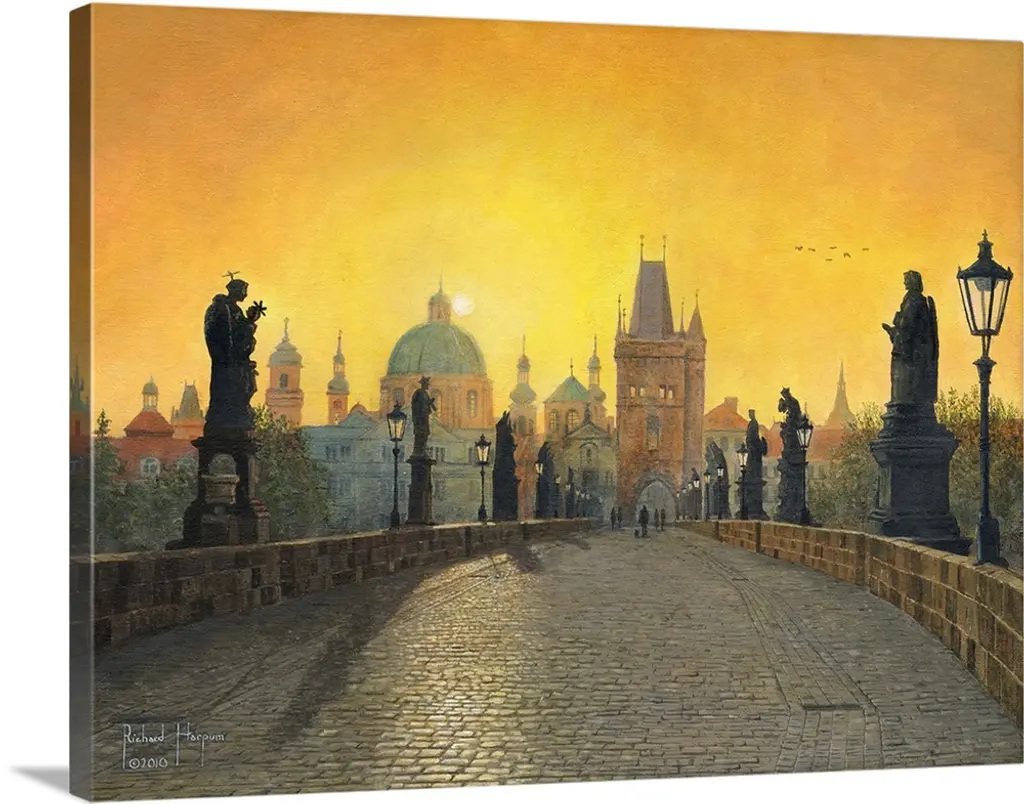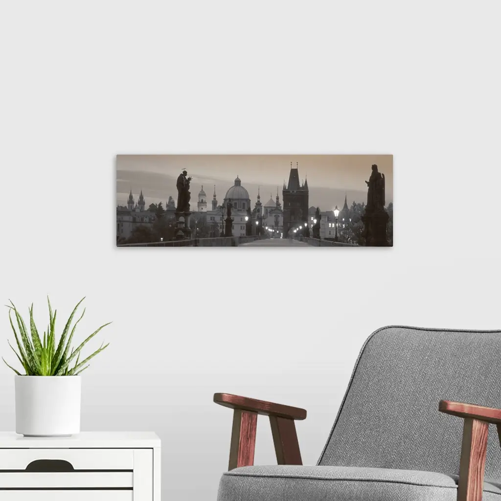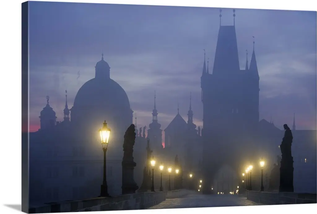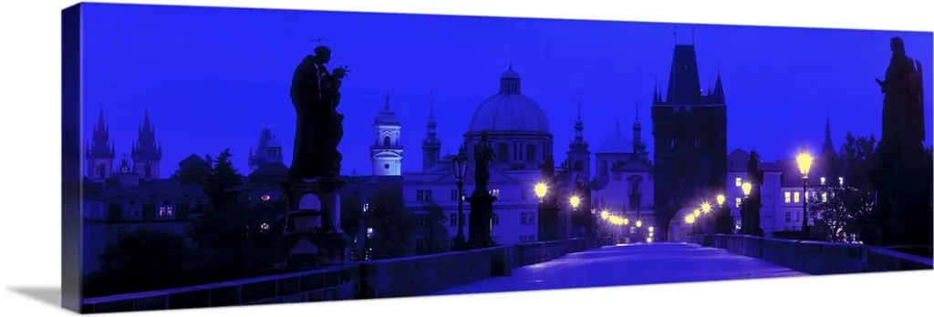 Lit Up Bridge At Dusk, Charles Bridge, Prague, Czech Republic