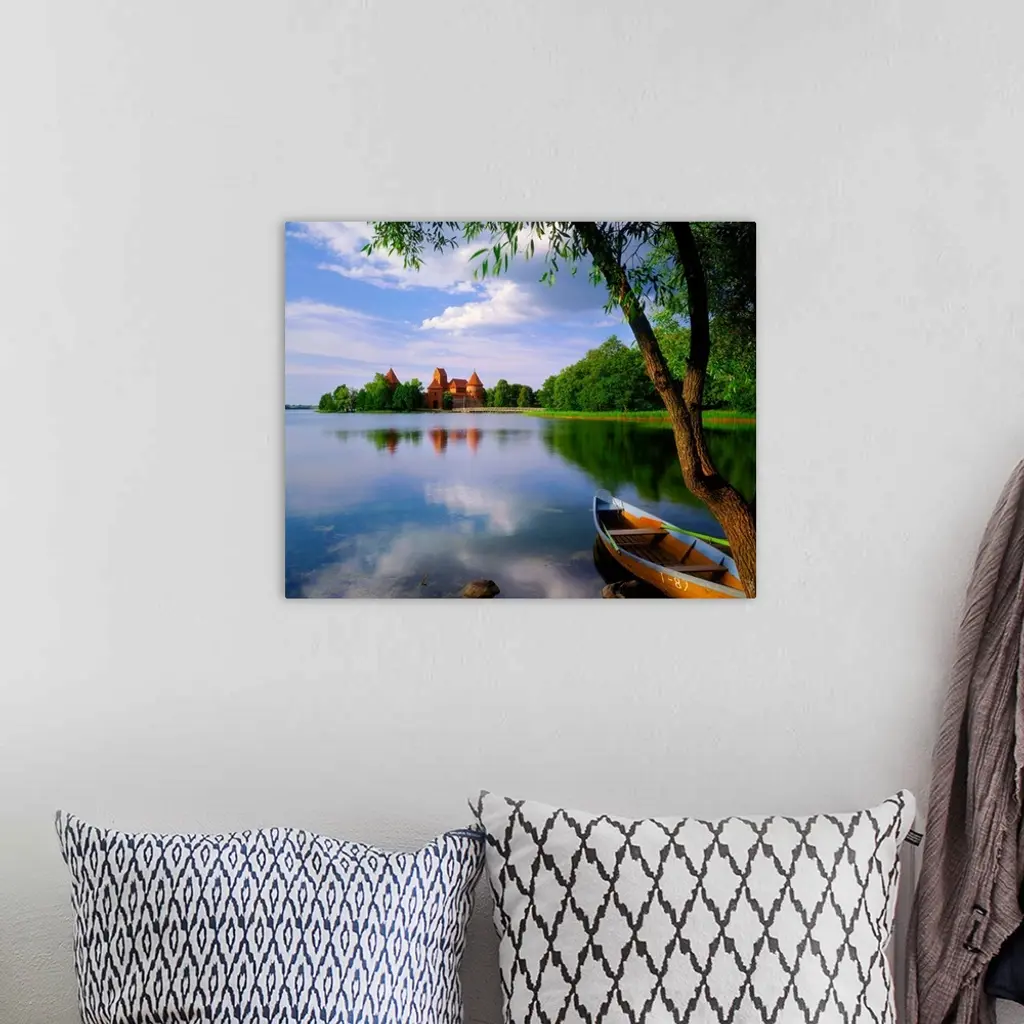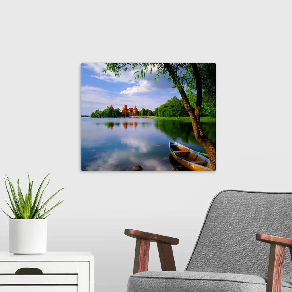 Lithuania, Trakai, View of the castle wall art for home and office decor. Discover canvas art prints, photos, mural, big canvas art and framed wall art in GreatBigCanvas.com's varied collections.
