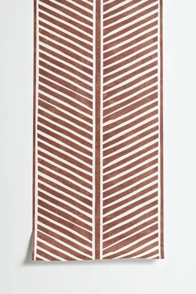 Easily removable stick-on wallpaper from Little Arrow Design Co featuring a modern take on the classic chevron motif. Cut in panels you can use to accent one wall or tile all over your room. Comes with one strip of wallpaper in an allover repeating pattern - choose from three different sizes to best suit your space. **Features** \- Peel and stick wallpaper panel from Little Arrow Design Co \- Topped with a modern chevron pattern \- Easily removes from your walls **Content + Care** \- Includes one panel \- Paper \- Wipe clean \- Made in the USA **Size** \- Small dimensions: 48"l x 24"w \- Medium dimensions: 96"l x 24"w \- Large dimensions: 120"l x 24"w
