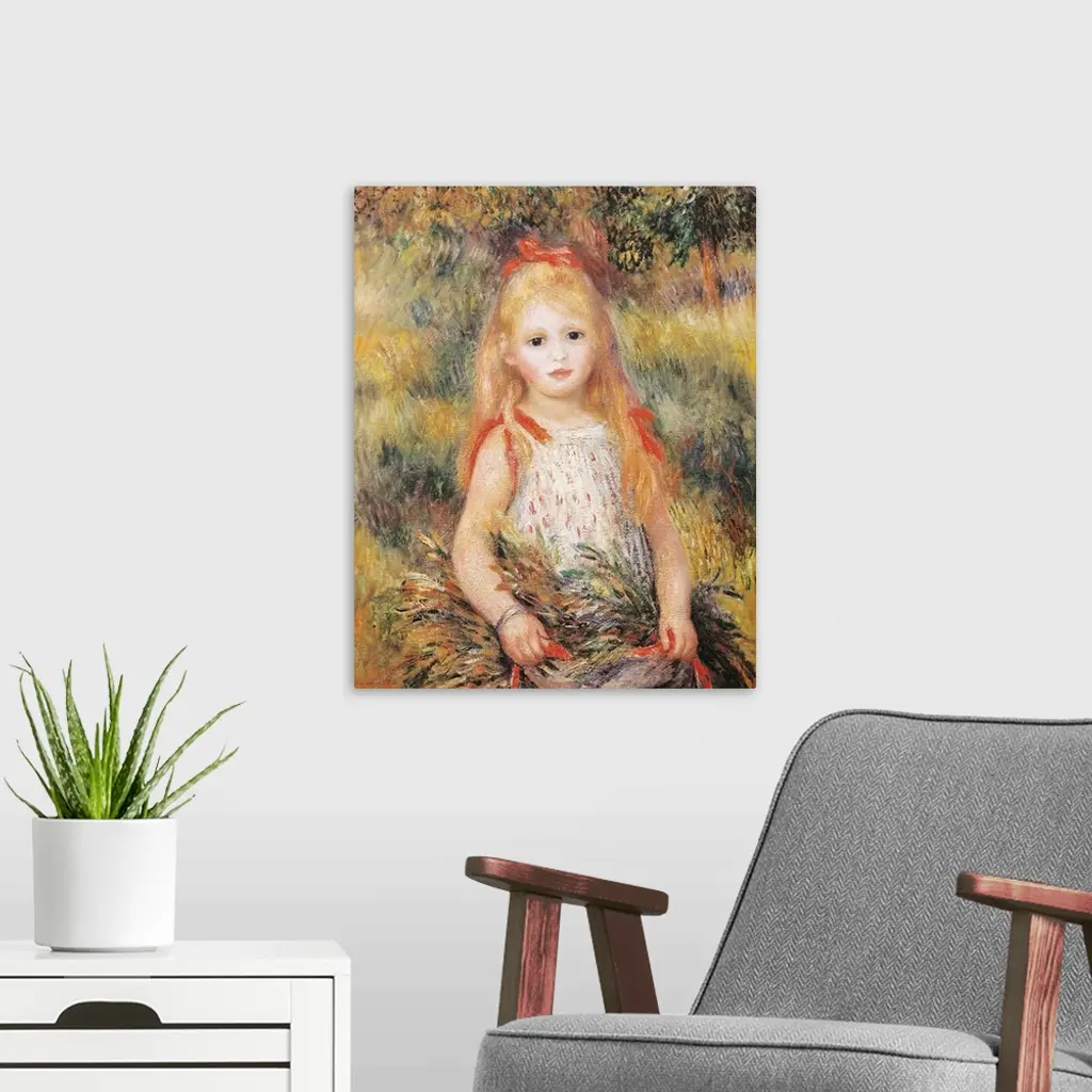RENOIR, Pierre-Auguste (1841-1919). Little Girl Carrying Flowers or The Little Gleaner. 1888. Impressionism. Oil on canvas. BRAZIL. Sao Paulo. Sao Paulo Museum of Art. -