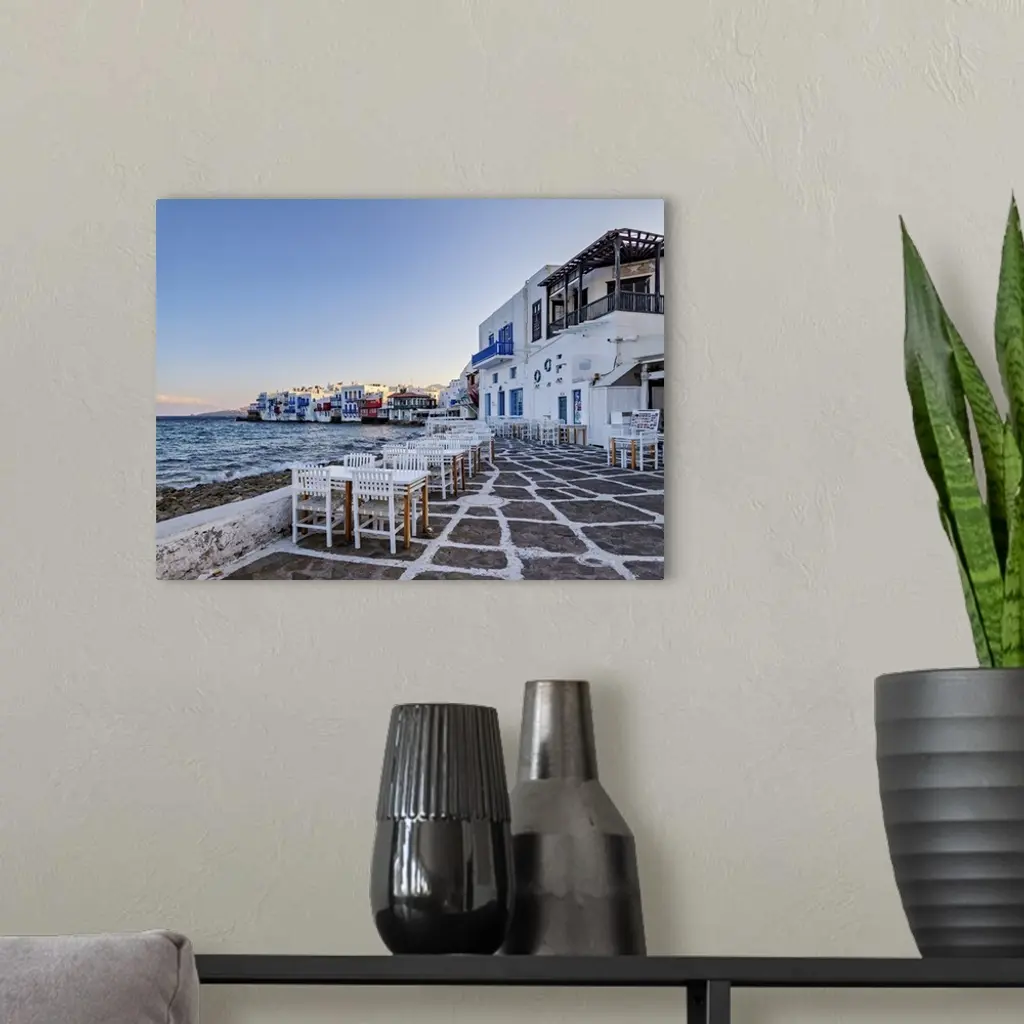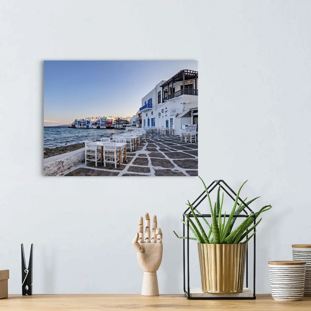 Little Venice at sunrise, Chora, Mykonos Town, Mykonos Island, Cyclades, Greek Islands, Greece, Europe