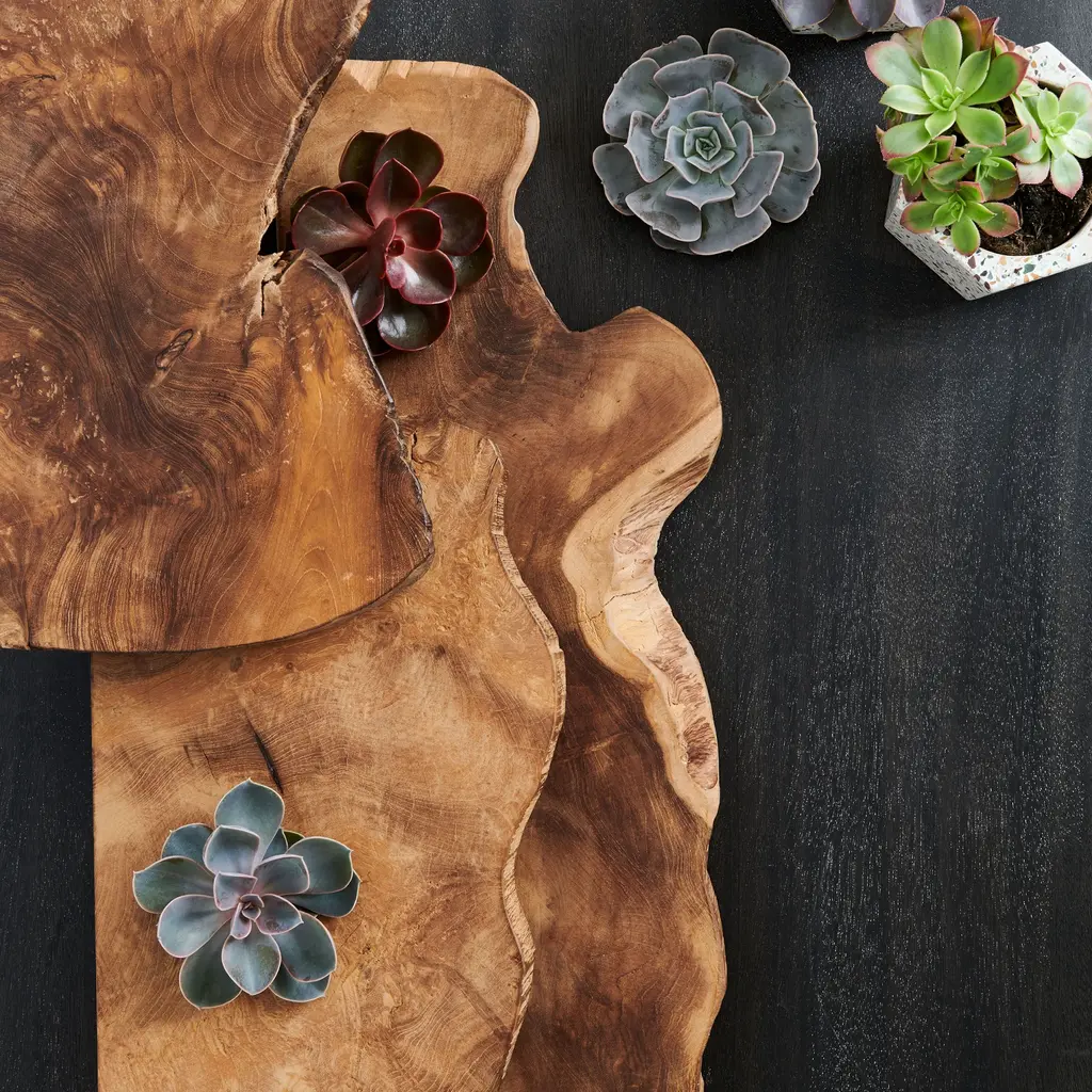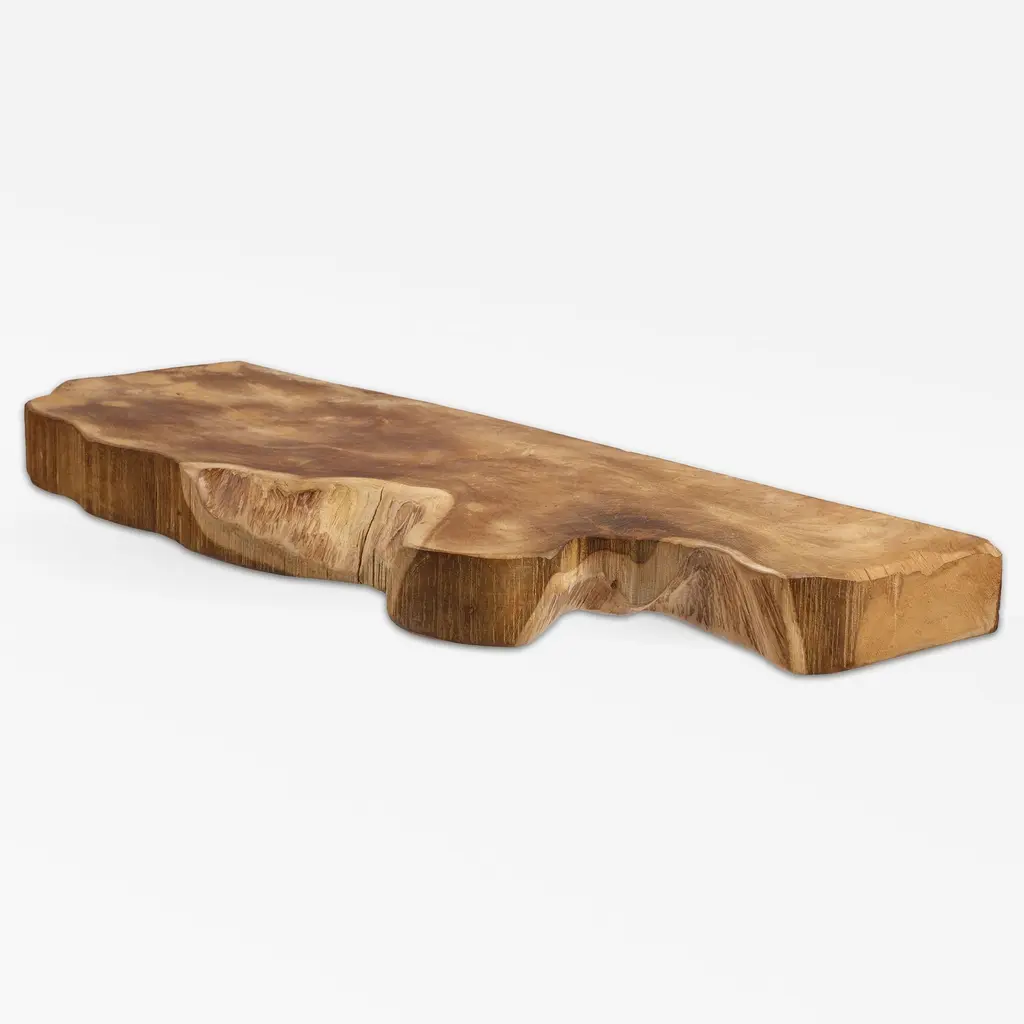 The natural curve and character of this live-edge wood shelf offers a piece of functional artwork for your home. Reclaimed from the enormous roots of felled teak trees, the wood is carefully crafted by skilled artisans to capture its stunning organic quality, each a one-of-kind beauty. Perfect for your bedroom, living area, or home office.