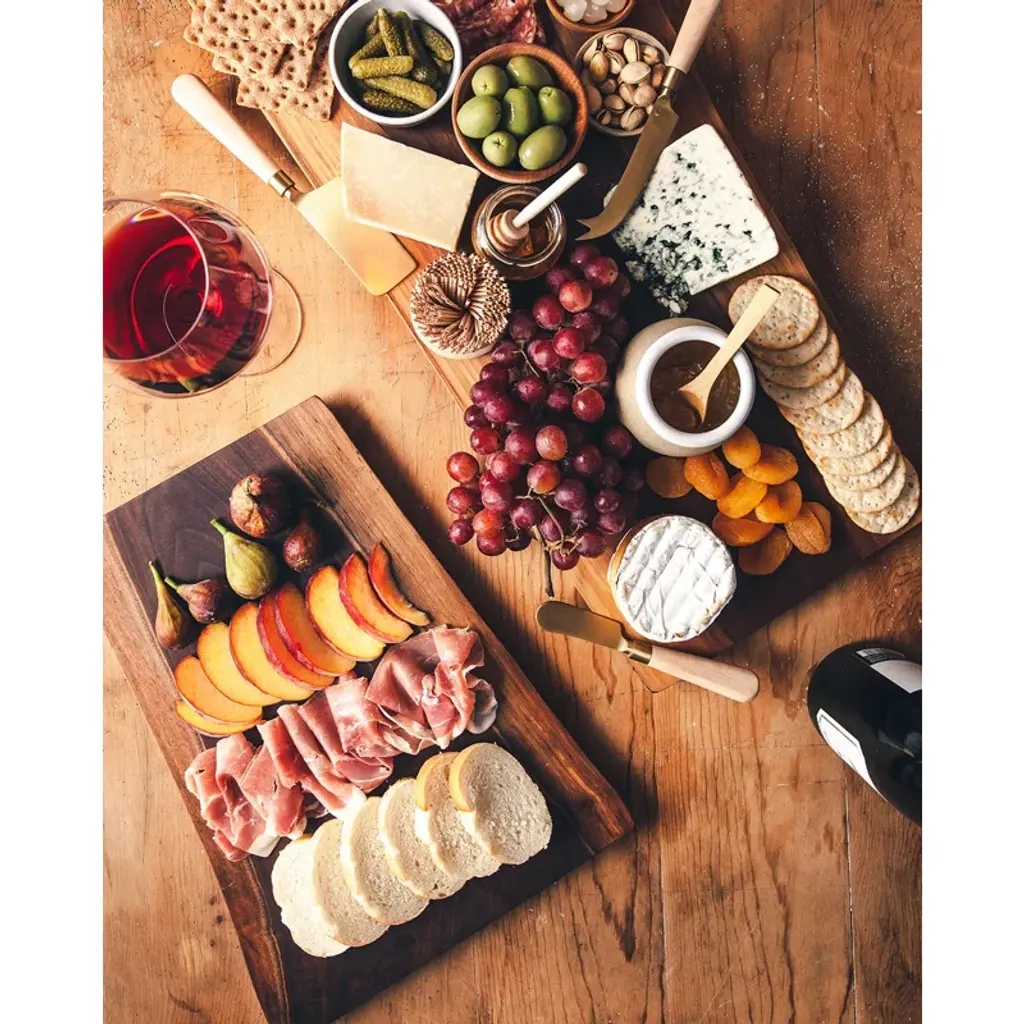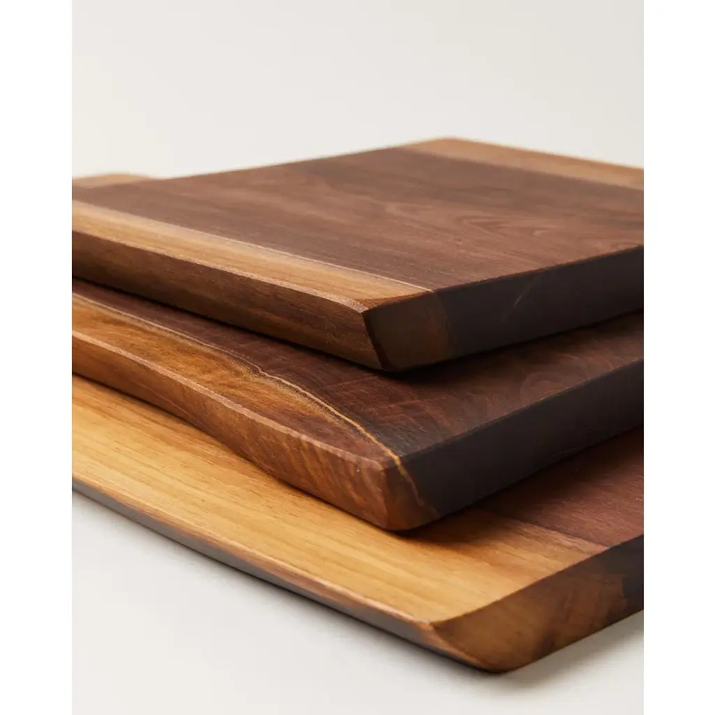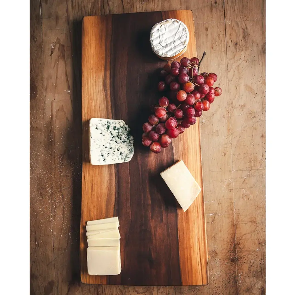 Organic and modern, this elegant piece is useful for cutting and serving. Designed for a beautiful presentation, each board has its own unique wood grain and a live edge.