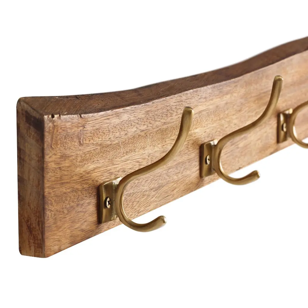 As an entryway fixture or bathroom towel hook, this 5-hook rack exudes rustic good looks and functional style. Crafted of a mango wood plank with walnut finish, it has a rough-hewn live edge that differs from piece to piece, making each one delightfully unique.