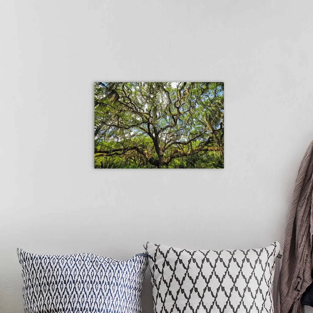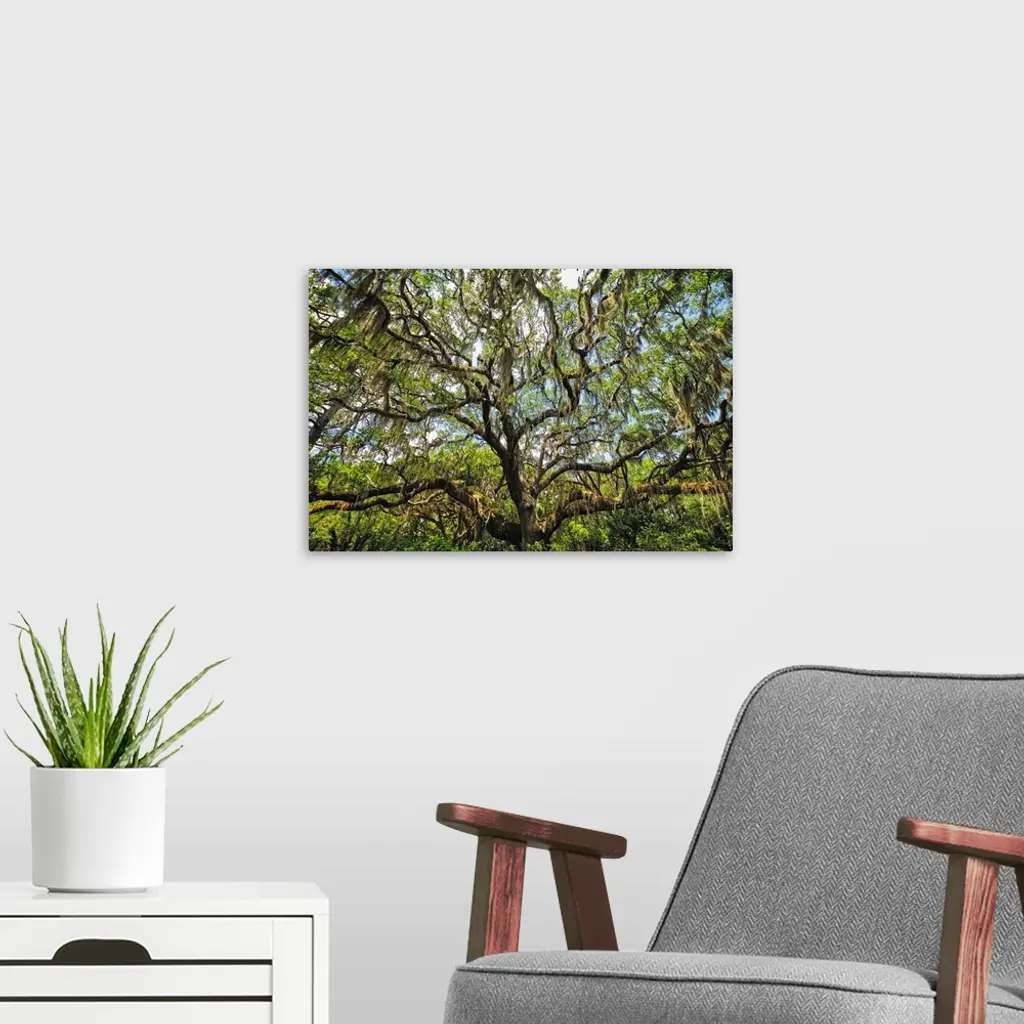 Live Oak Tree Canopy with Spanish Moss, Charleston, Sout Carolina.