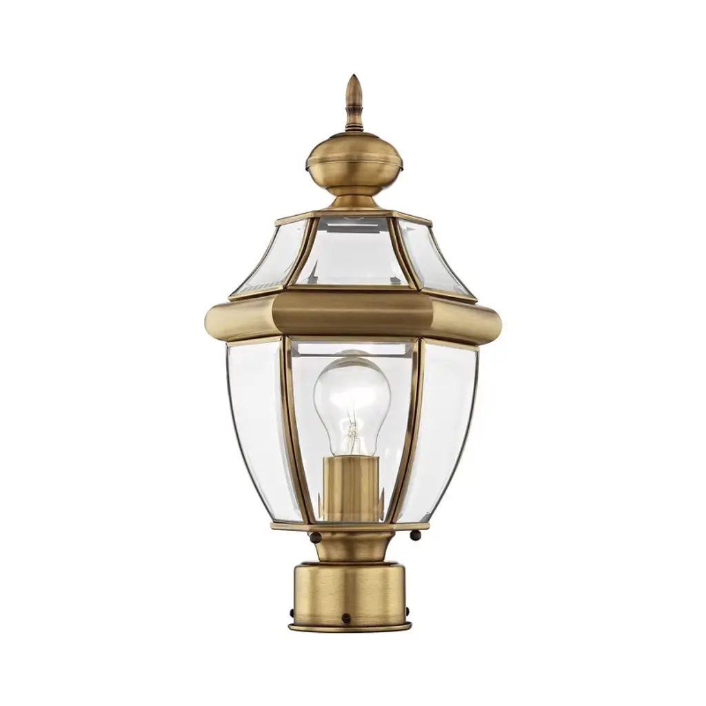 Collection: Monterey, Material: Brass, Finish Color: Bronze, Width: 8.5", Height: 16.5", Lamping Type: Incandescent, Number Of Bulbs: 1, Wattage: 100 Watts, Moisture Rating: Dry Rated, Desc: The Monterey outdoor lighting features clean, crisp lines complemented by the graceful curves of beveled glass. Crafted from sturdy solid brass this handsome colonial styling makes this fixture a perfect addition to your outdoor spaces. Shade Included: Yes. ,