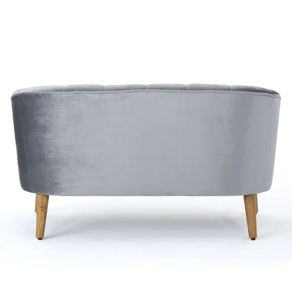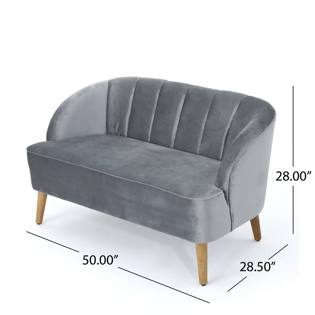 This stunning shell-backed loveseat combines classic elegance with a modern flair, making it the perfect statement piece for any living room. Upholstered in luxurious polyester velvet and featuring a channel-tufted back, it adds a touch of sophistication while offering exceptional comfort. The round arms and tight seat cushion enhance its sleek, tailored appearance, making it both stylish and functional.Features:Product Dimensions: