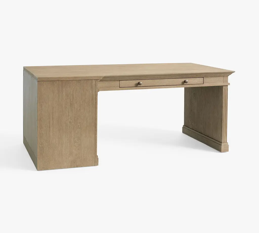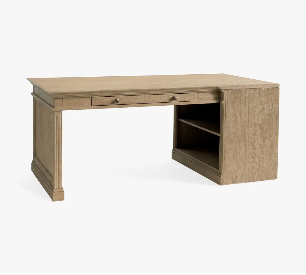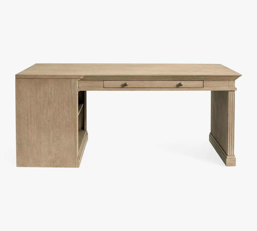 Classic details like crown molding, fluted trim, and hand-applied finishes give this customizable collection timeless appeal. This desk features a spacious worktop and ample storage, bringing order to the tasks at hand. Designed to work seamlessly with other modular components from our Livingston Collection, it creates a look that's both functional and sophisticated.