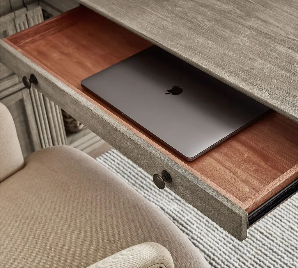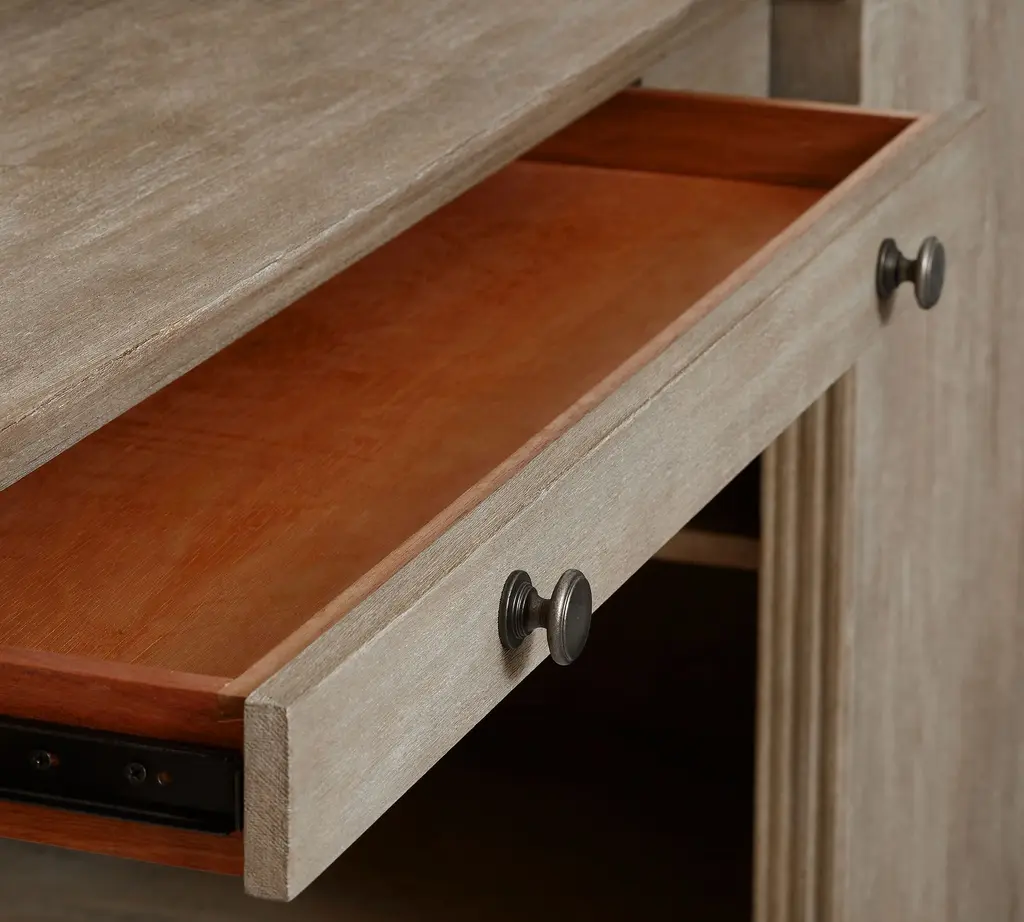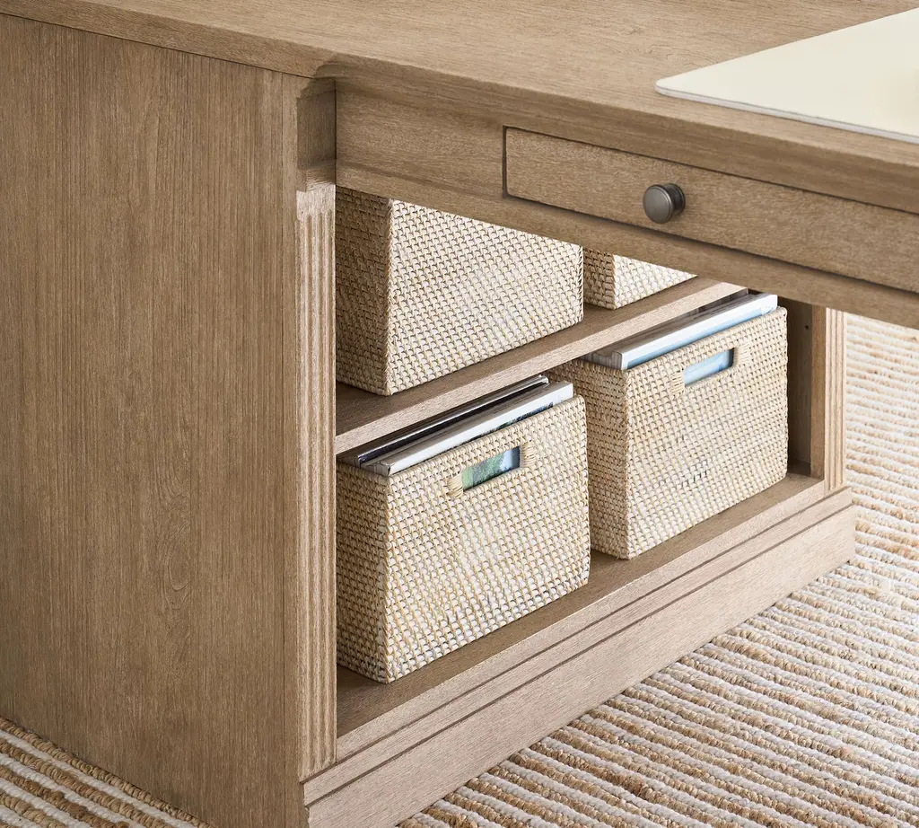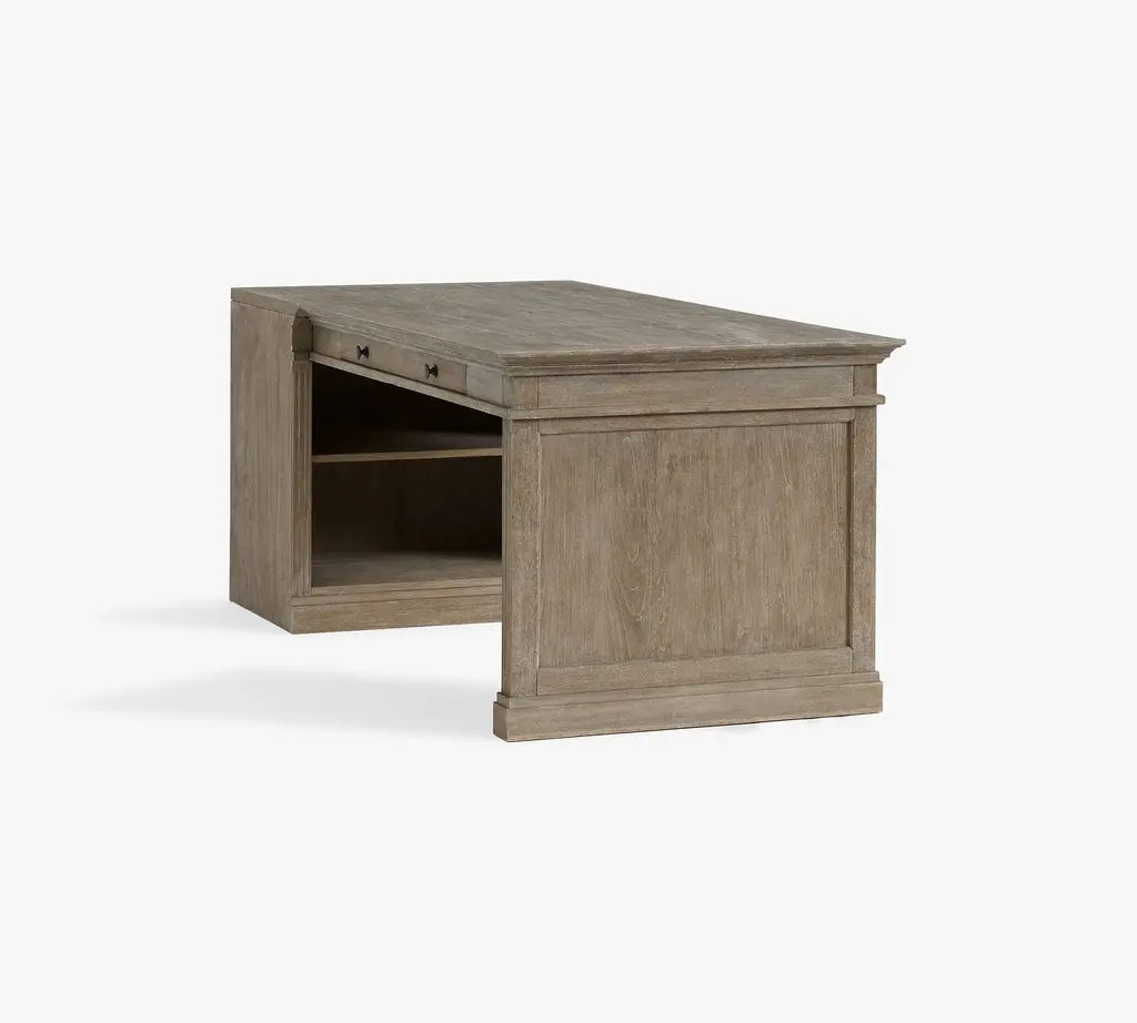 Classic details like crown molding, fluted trim, and hand-applied finishes give this customizable collection timeless appeal. This desk features a spacious worktop and ample storage, bringing order to the tasks at hand. Designed to work seamlessly with other modular components from our Livingston Collection, it creates a look that's both functional and sophisticated.