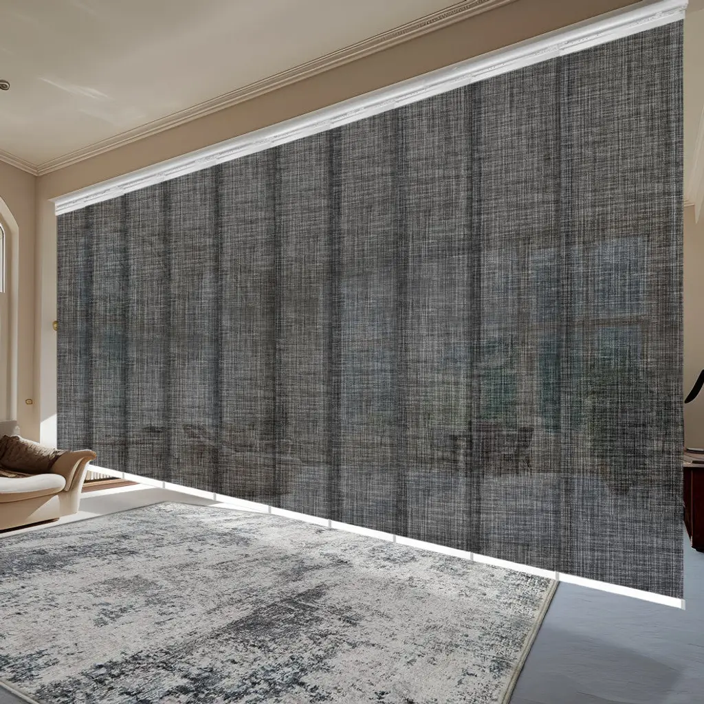 Central Design Products is pleased to introduce a new innovative panel track that offers easy 2-way installation, adding an alluring style and refined touch to your home decor. The double rail design of the track is sleek, compact, and reduces the overall footprint and weight of the installation, eliminating bulky, intrusive window treatments. Adjusting the panel height is a breeze � simply trim the panel, re-attach the liner, and install the panel weight. Detailed instructions are included.The panel track also features a patented slider design, made with aluminum and fitted with bearings that allow for durable and smooth operation. The sliders are stacked closer together than conventional panel tracks, reducing light bleed coming from the gaps between panels. This track has endless uses from dividing rooms, garages, offices, and closets to decorating windows and patios. Available in smaller sizes including 3, 4, 5, 6, and 7 panels. Extends from 120-218� wide. Each panel measures 23.5" wide and 91.5" tall, with a total installation height of 94" (includes the 2.5" rail track). The track can be wall or ceiling mounted. The panels can stack on the left or the right. The clearance from the wall is extendable from 1.25� to 3.25� and projection from the wall is extendable from 3� to 4.25�. Lizbeth panel is made from 85% Vinyl 15% Polyester, with a light filtering shade that blocks 40% of the light.
