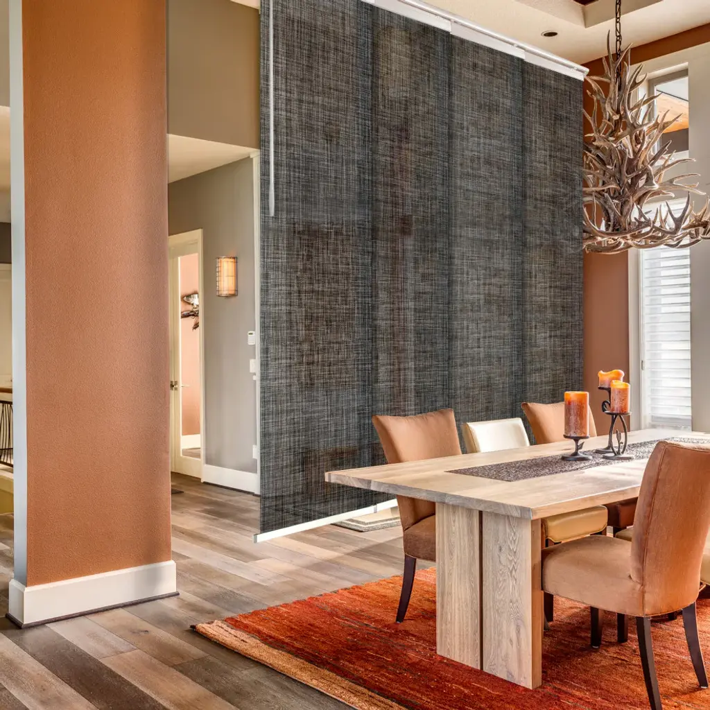 Central Design Products is pleased to introduce a new innovative panel track that offers easy 2-way installation, adding an alluring style and refined touch to your home decor. The single rail design of the track is sleek, compact, and reduces the overall footprint and weight of the installation, eliminating bulky, intrusive window treatments. Adjusting the panel height is a breeze � simply trim the panel, re-attach the liner, and install the panel weight. Detailed instructions are included.The panel track also features a patented slider design, made with aluminum and fitted with bearings that allow for durable and smooth operation. The sliders are stacked closer together than conventional panel tracks, reducing light bleed coming from the gaps between panels. This track has endless uses from dividing rooms, garages, offices, and closets to decorating windows and patios. Available in larger sizes including 8, 10, and 12 panels. Extends from 48-88� wide. Each panel measures 23.5" wide and 116" tall, with a total installation height of 118.5" (includes the 2.5" rail track). The track can be wall or ceiling mounted. The panels can stack on the left or the right. The clearance from the wall is extendable from 1.25� to 3.25� and projection from the wall is extendable from 3� to 4.25�. Lizbeth panel is made from 85% Vinyl 15% Polyester, with a light filtering shade that blocks 40% of the light.