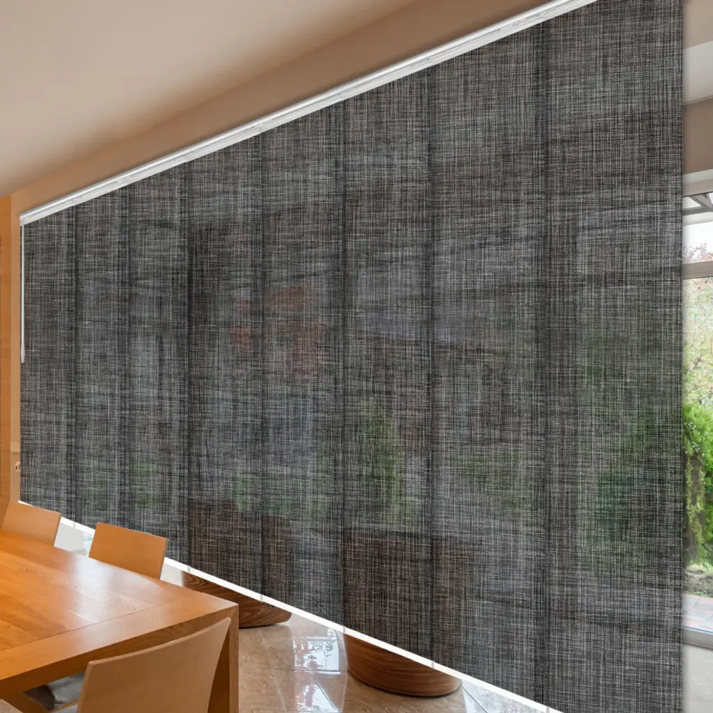 Central Design Products is pleased to introduce a new innovative panel track that offers easy 2-way installation, adding an alluring style and refined touch to your home decor. The double rail design of the track is sleek, compact, and reduces the overall footprint and weight of the installation, eliminating bulky, intrusive window treatments. Adjusting the panel height is a breeze � simply trim the panel, re-attach the liner, and install the panel weight. Detailed instructions are included.The panel track also features a patented slider design, made with aluminum and fitted with bearings that allow for durable and smooth operation. The sliders are stacked closer together than conventional panel tracks, reducing light bleed coming from the gaps between panels. This track has endless uses from dividing rooms, garages, offices, and closets to decorating windows and patios. Available in smaller sizes including 3, 4, 5, 6, and 7 panels. Extends from 130-175� wide. Each panel measures 23.5" wide and 91.5" tall, with a total installation height of 94" (includes the 2.5" rail track). The track can be wall or ceiling mounted. The panels can stack on the left or the right. The clearance from the wall is extendable from 1.25� to 3.25� and projection from the wall is extendable from 3� to 4.25�. Lizbeth panel is made from 85% Vinyl 15% Polyester, with a light filtering shade that blocks 40% of the light.