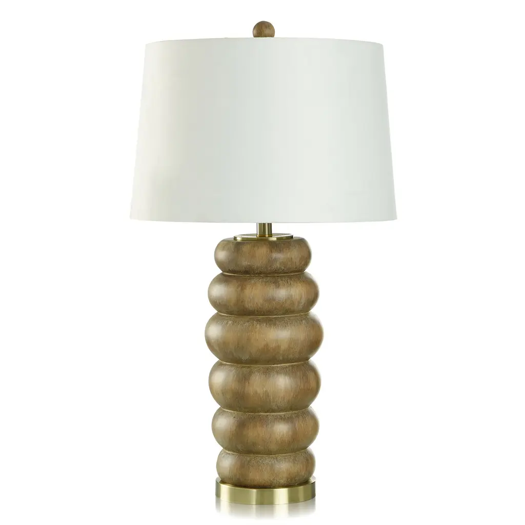 Lizzie - Bubble Base Shape - White Linen Shade - Brown