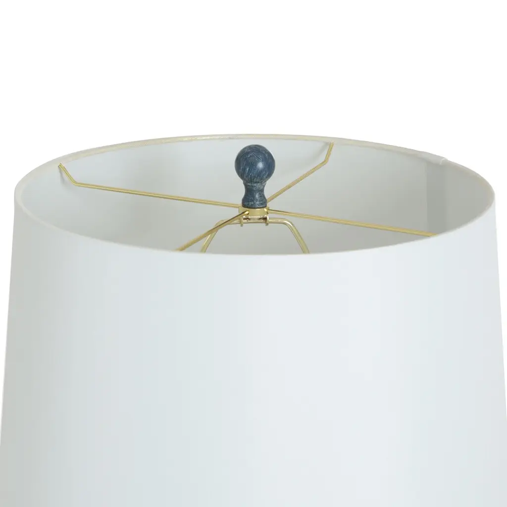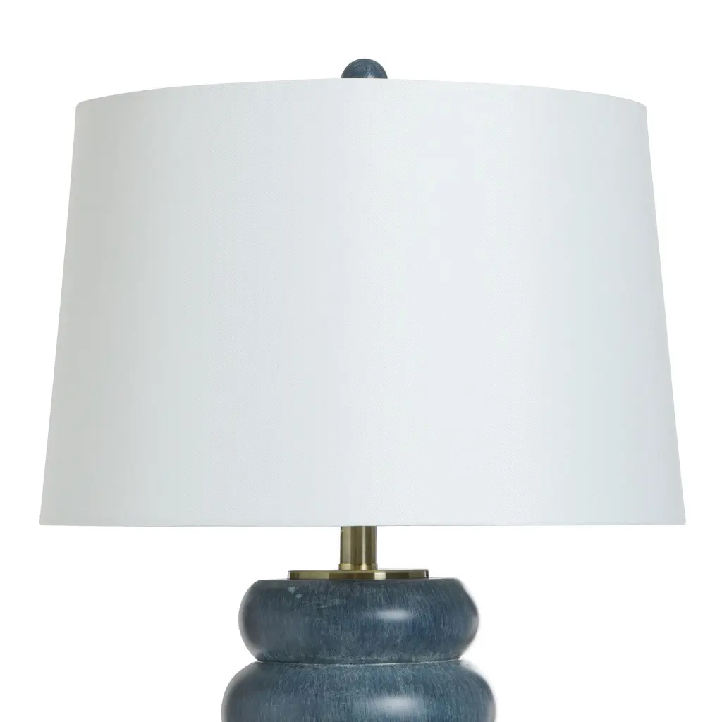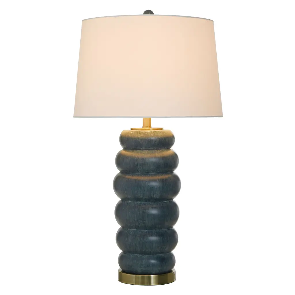This layered table lamp has a unique design that is meant to draw attention. The lamp base is finished in a blue denim wash and features brushed brass accents.Due to the production process, each piece is unique and no two are exactly alike.Add a pop of design in your space with this unique denim washed table lamp.Made from polyresin and featuring brushed brass accents, this is the perfect piece to decorate in your home.Weight: 9.5 poundsSocket Type: E26Socket Quantity: 1