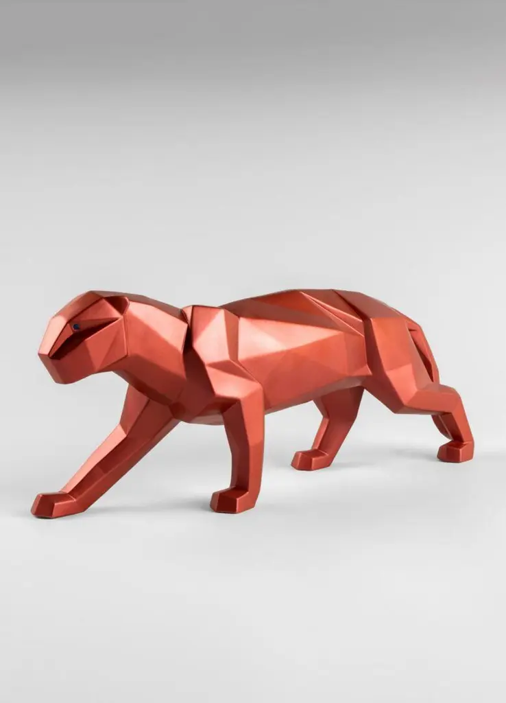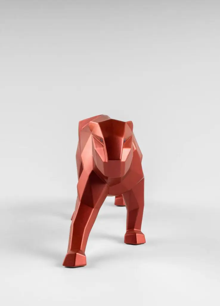 Panther from the Origami collection in metallic red. The Origami grows with this red metallic version of its striking panther. The geometric treatment, from which this collection interprets the animal kingdom, instills the pieces with great expressiveness and strength. A conceptual approach that turns these handcrafted porcelain animals into undisputable decorative icons.