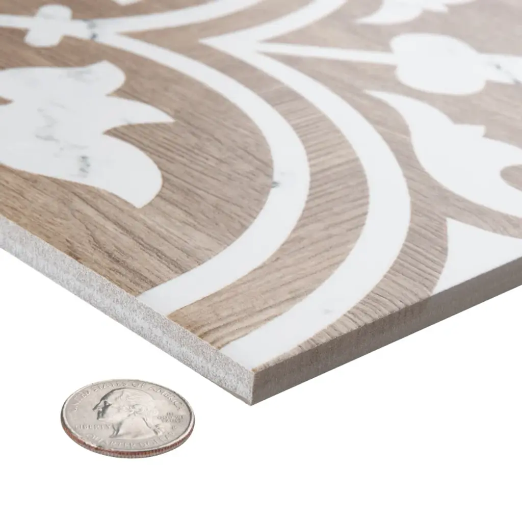 Replicating a wood look, our Llama Arte Loire Porcelain Floor and Wall Tile provide a decorative appeal that adapts to a variety of stylistic contexts, making it a great choice for your space. With its impervious, frost-resistant features, this square tile is an ideal selection for both indoor and outdoor installations, including bathrooms, backsplashes, showers, hallways, and fireplace facades. This tile is a perfect choice on its own or paired with other products in the Loire Collection. Tile is the better choice for your space. This tile is made from natural ingredients, making it a healthy choice as it is free from allergens, VOCs, formaldehyde, and PVC.