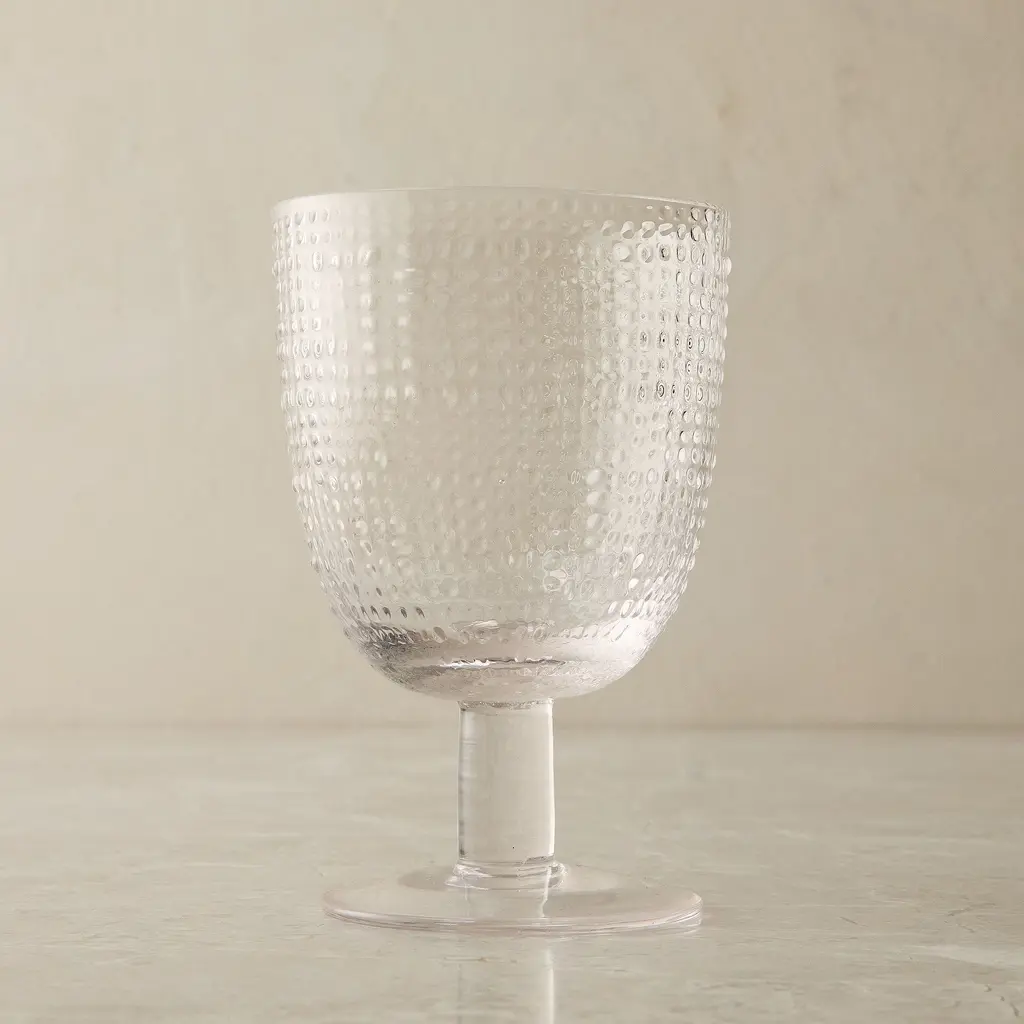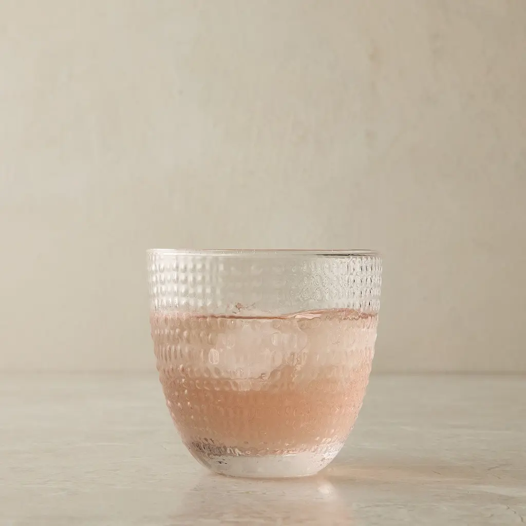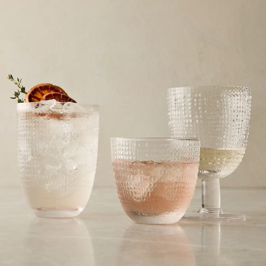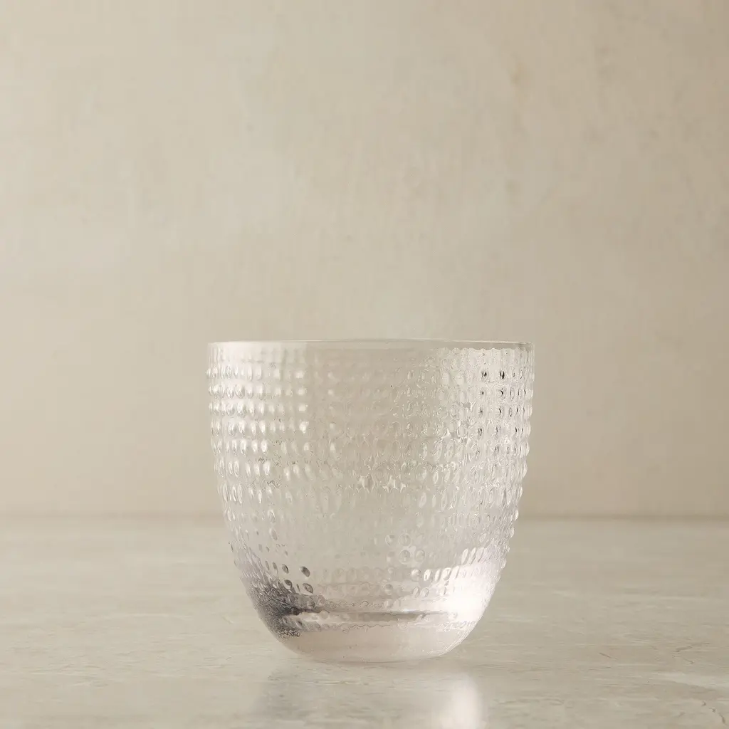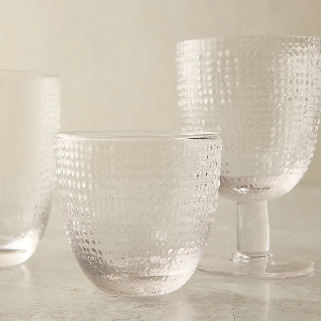The understated beauty of soda lime glass. Enjoy your favorite beverage in beaded, textured style. Sold in handy sets, ideal for your next family meal or get-together. Dishwasher safe for easy cleanup.