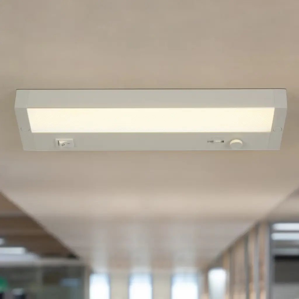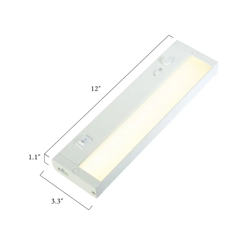 This 12-inch under-cabinet LED light features a slim profile at just 1.1 inches in height and provides bright, energy-efficient illumination. The white finish and frosted diffuser ensure soft, even light distribution, perfect for kitchen counters, workspaces, or display areas. It includes an easy-to-use on/off switch for quick control. With its compact design, this fixture is ideal for small spaces where you need high-quality task lighting. Simple installation and durable performance make it a great lighting solution for your home.