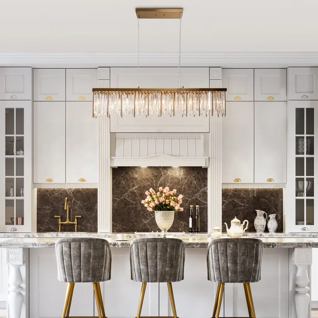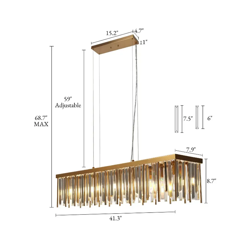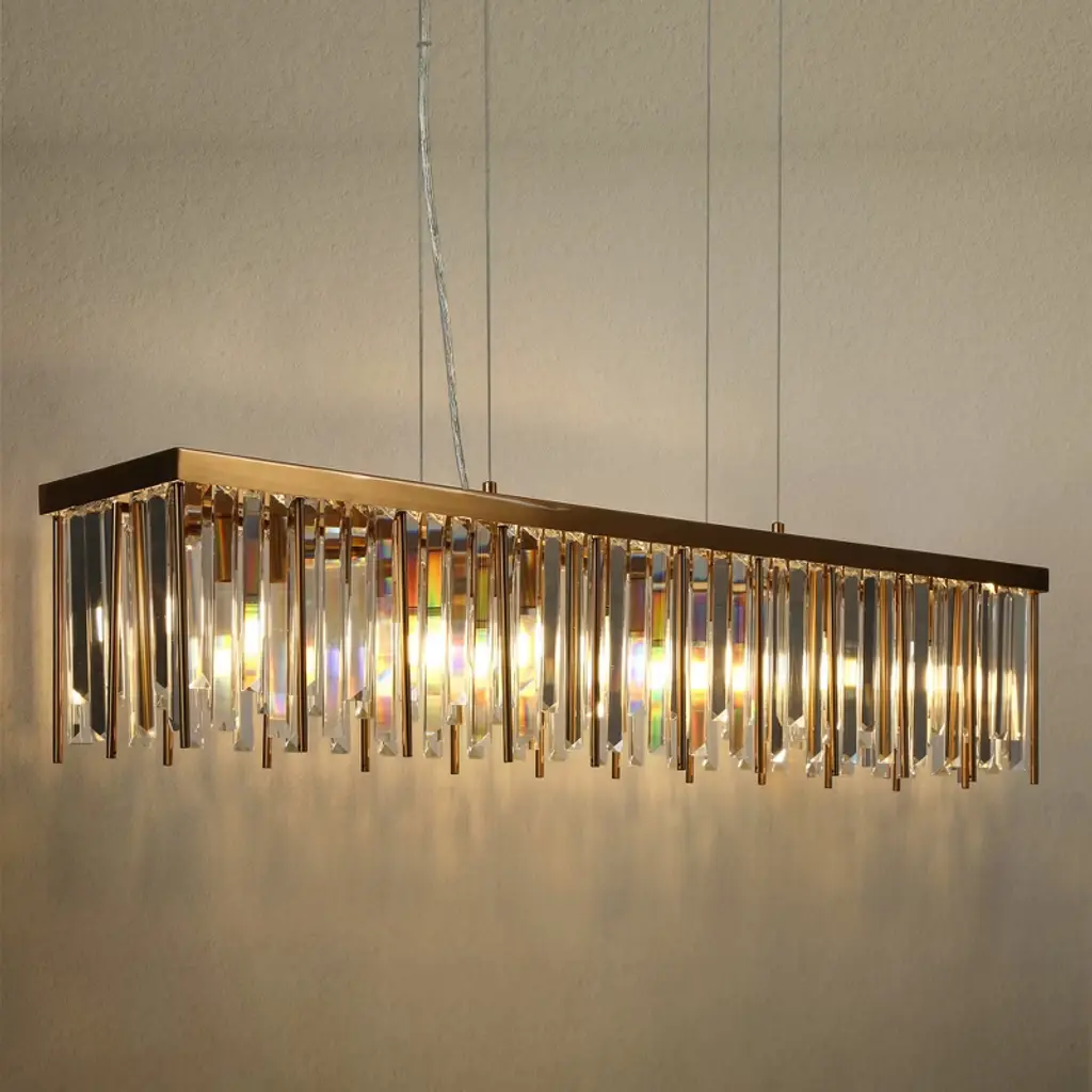 Lnc Athean 7-lights 41.3" Luxury And Glam Crystal Rectangle Island Lights,gold