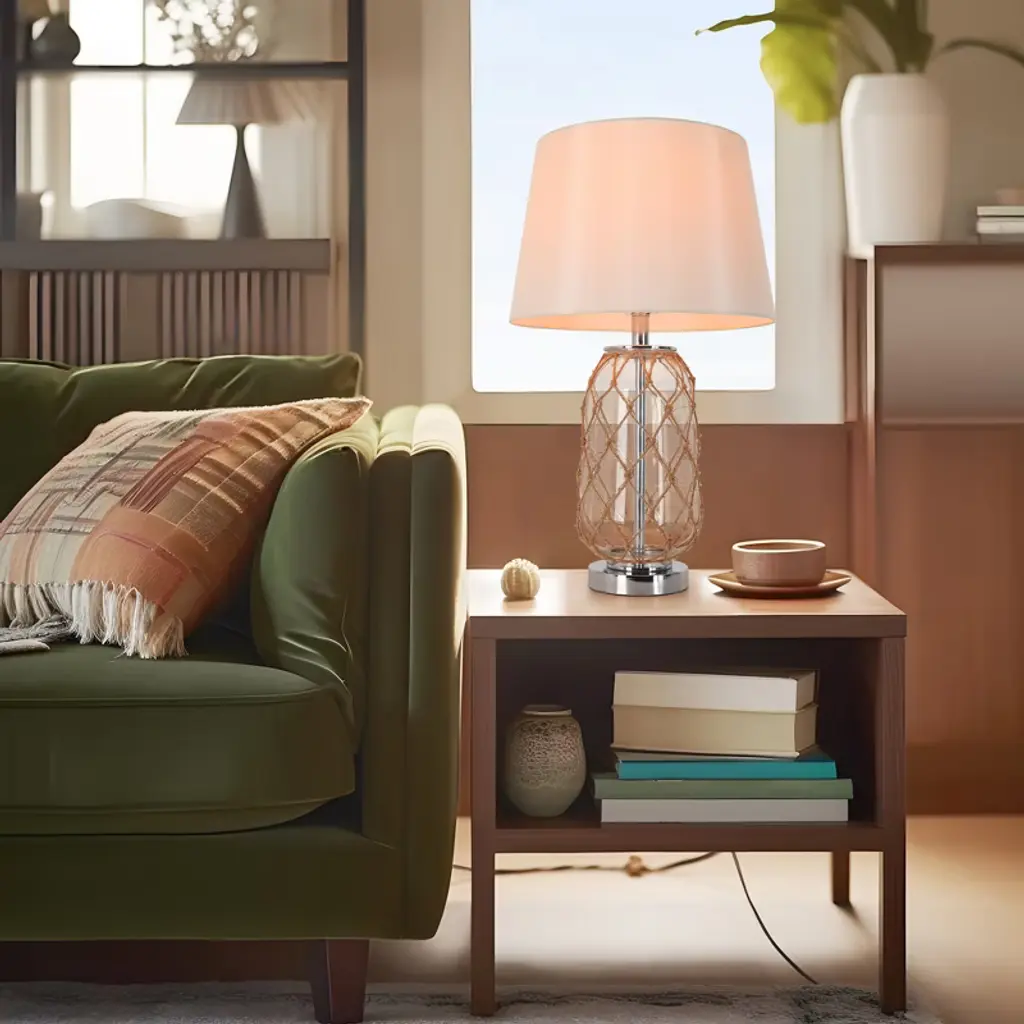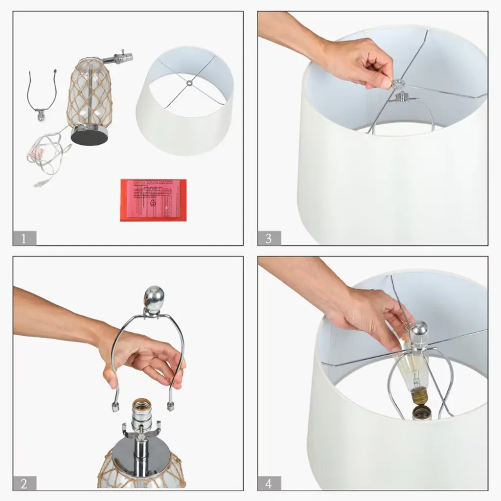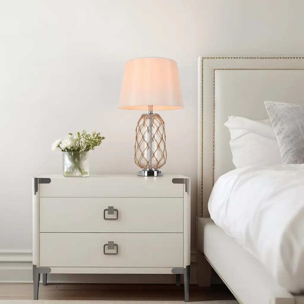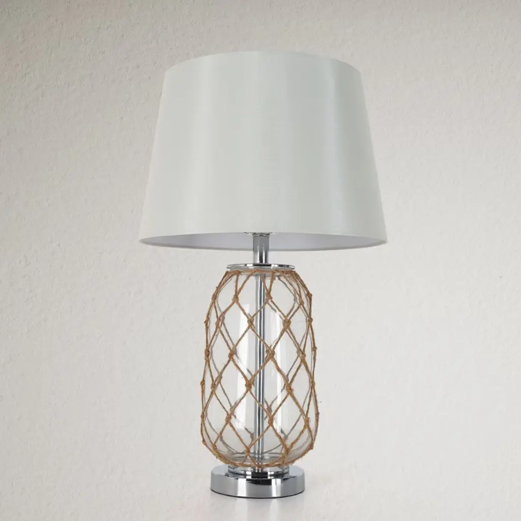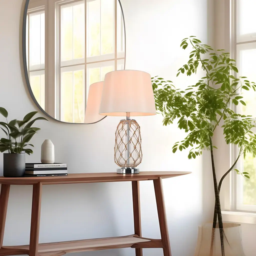 Lnc Flabellum 26-in Chrome And Clear Glass Rope Table Lamp With Fabric Shade, Modern