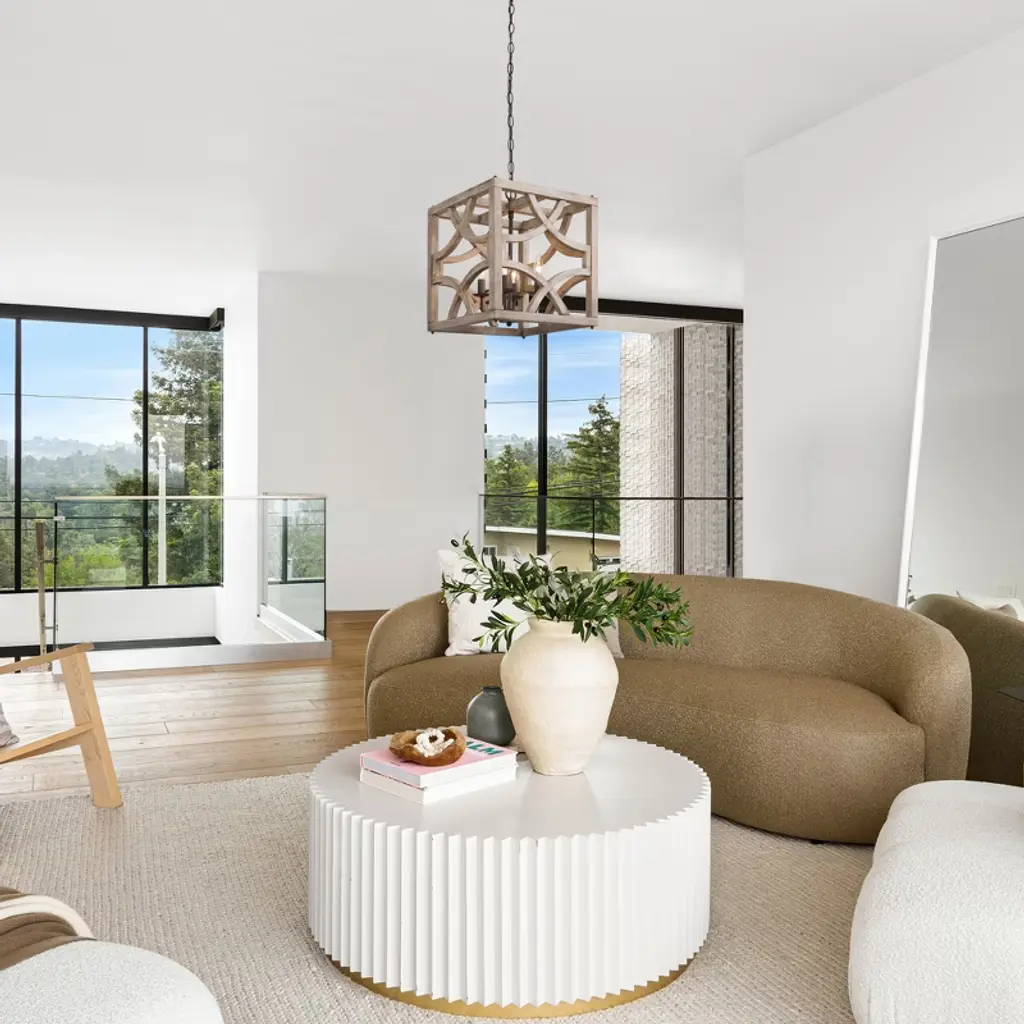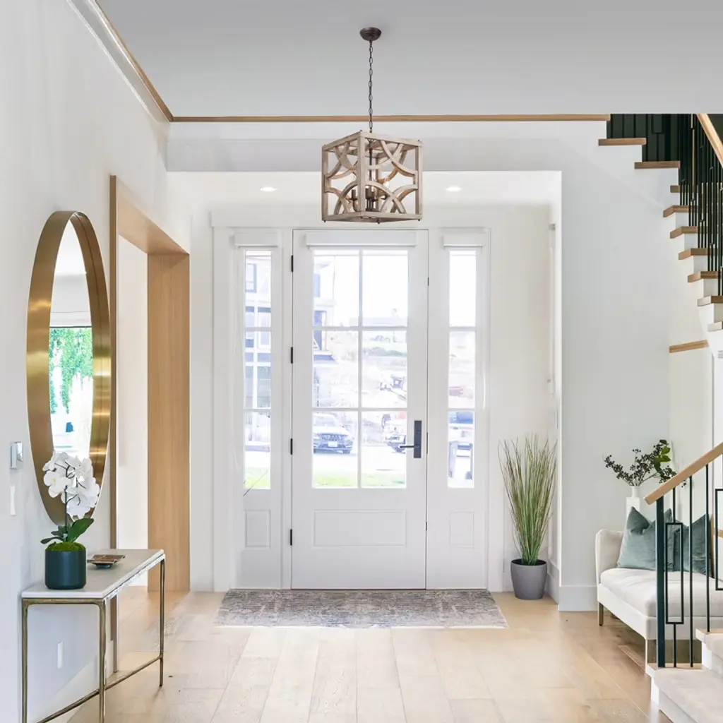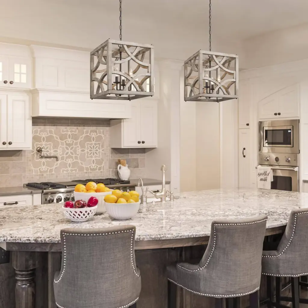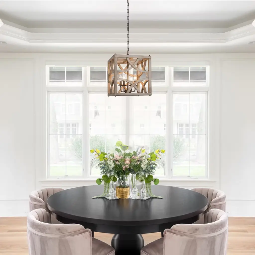 This attractive farmhouse kitchen island light is made of superior solid birch wood, handcrafted curved hollow cage adds a breezy touch to any space in your home, presenting a simple and elegant silhouette. The hand-painted antique white wood color with rusty bronze finish over the metal part adds a romantic farmhouse chic to your living space.