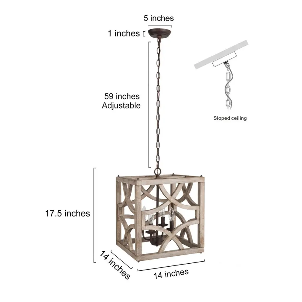 Lnc Quaint 4-lights 14" Farmhouse Square Pendnat Lights, Greyish White Wood And Rustic Bronze