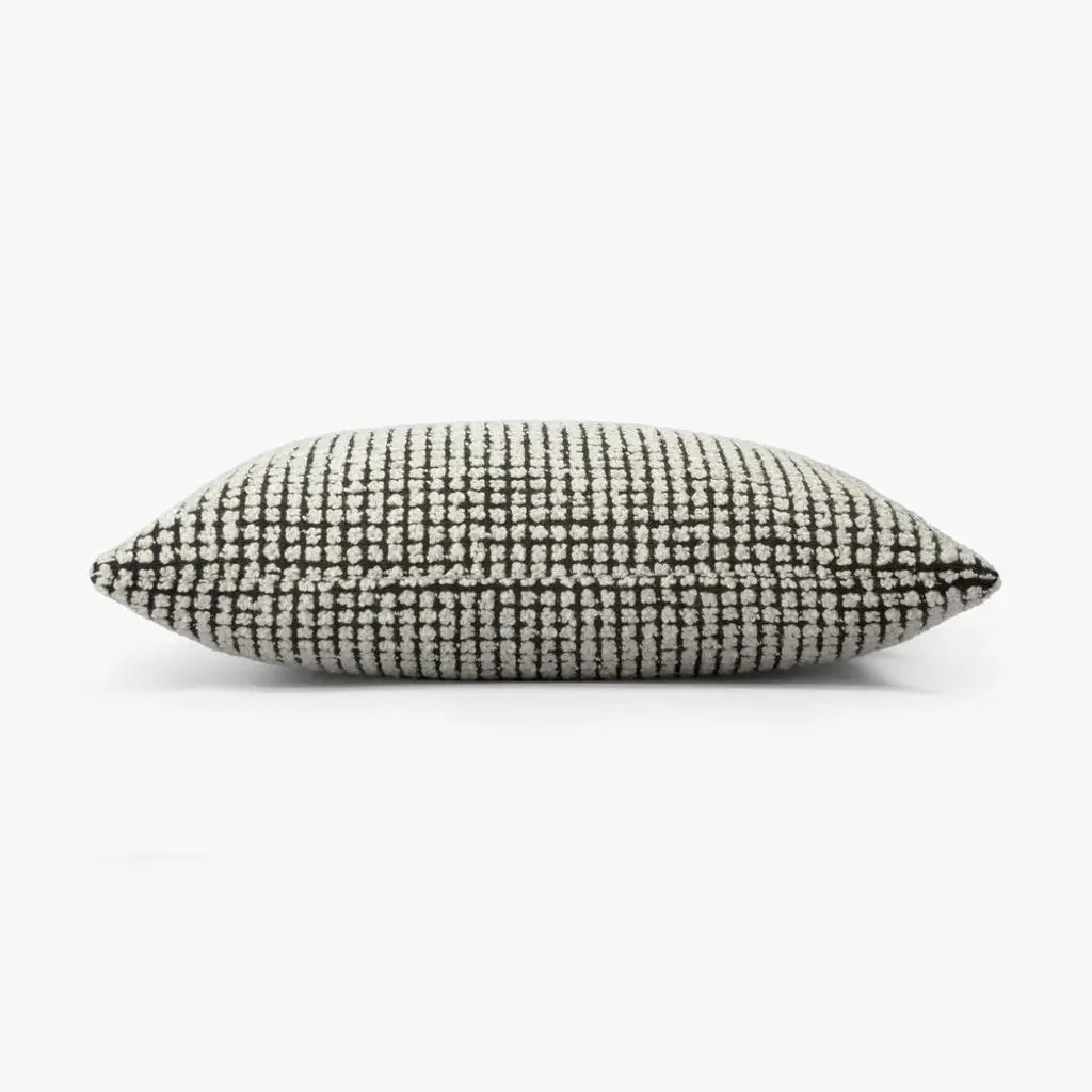 These stunning cushions boast the elegance of traditional patterns, enlivened with different texture and colour combination. Characterized by tone-on-tone color or by refined tweed texture, with high quality wool fabric with herringbone effect and black and white patterns. soft cushion in fine wool and cotton. removable supplied with padding. fabric 18% co - 26% wo - 22% pc – 31% pl – 3%pa padding 100% pl dry wash made in italy labeled by maker,labeled with country of origin