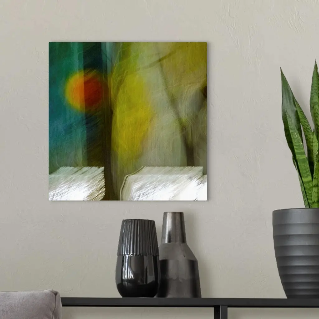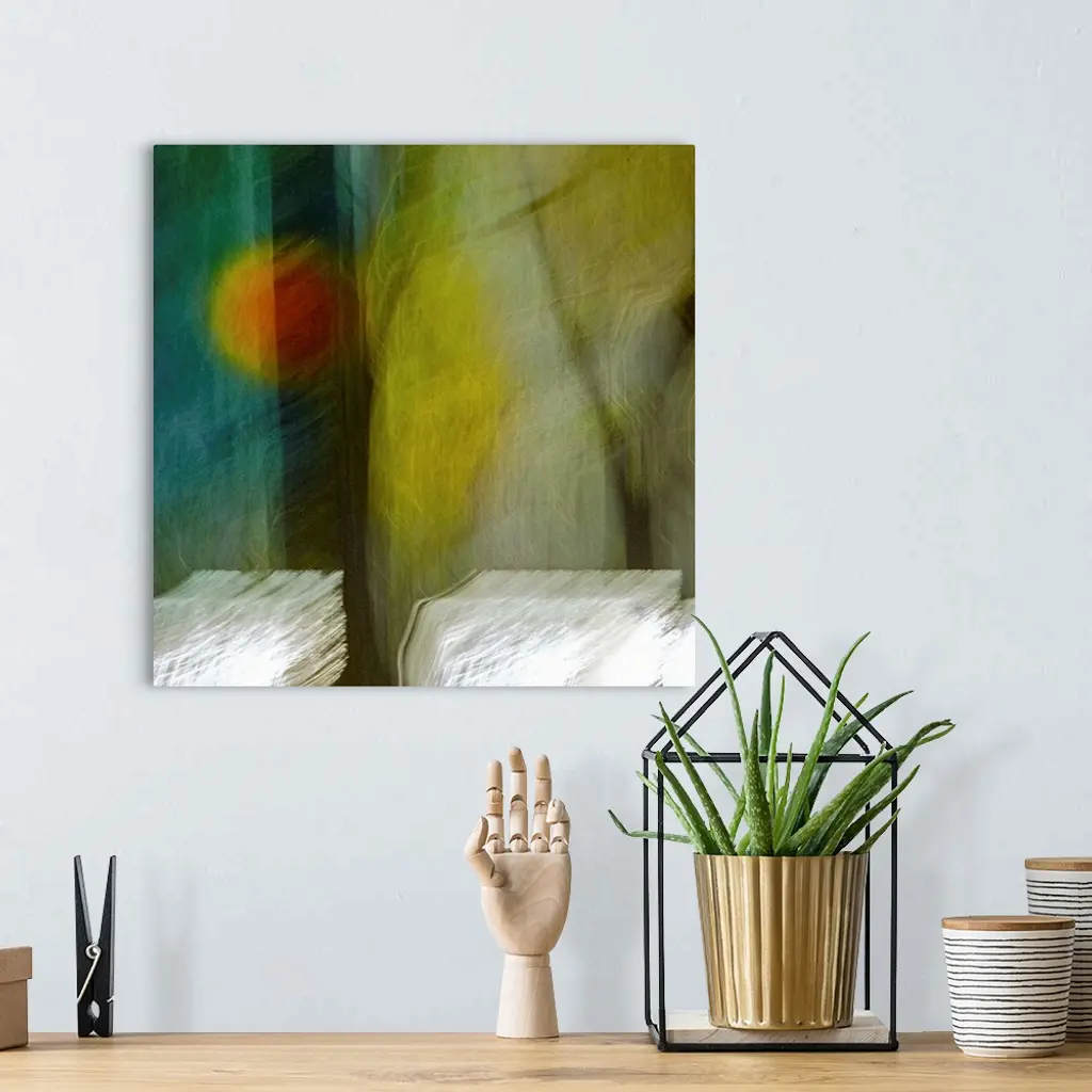 Surreal landscape photograph of a Lochside with moving lines and a bright sun.