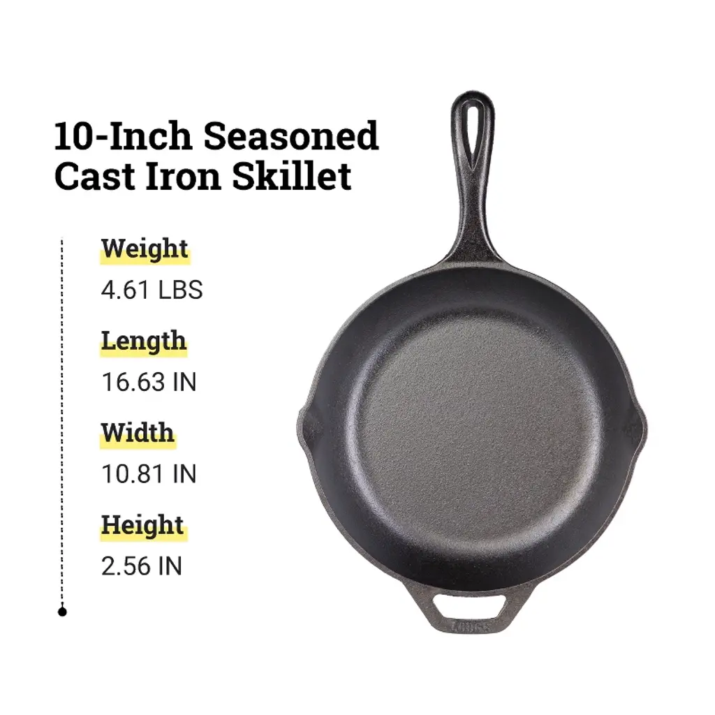 Lodge 10" Chef Collection Cast Iron Skillet: Pre-seasoned For Frying, Searing, And More. A Kitchen Essential For Versatile Cooking.
