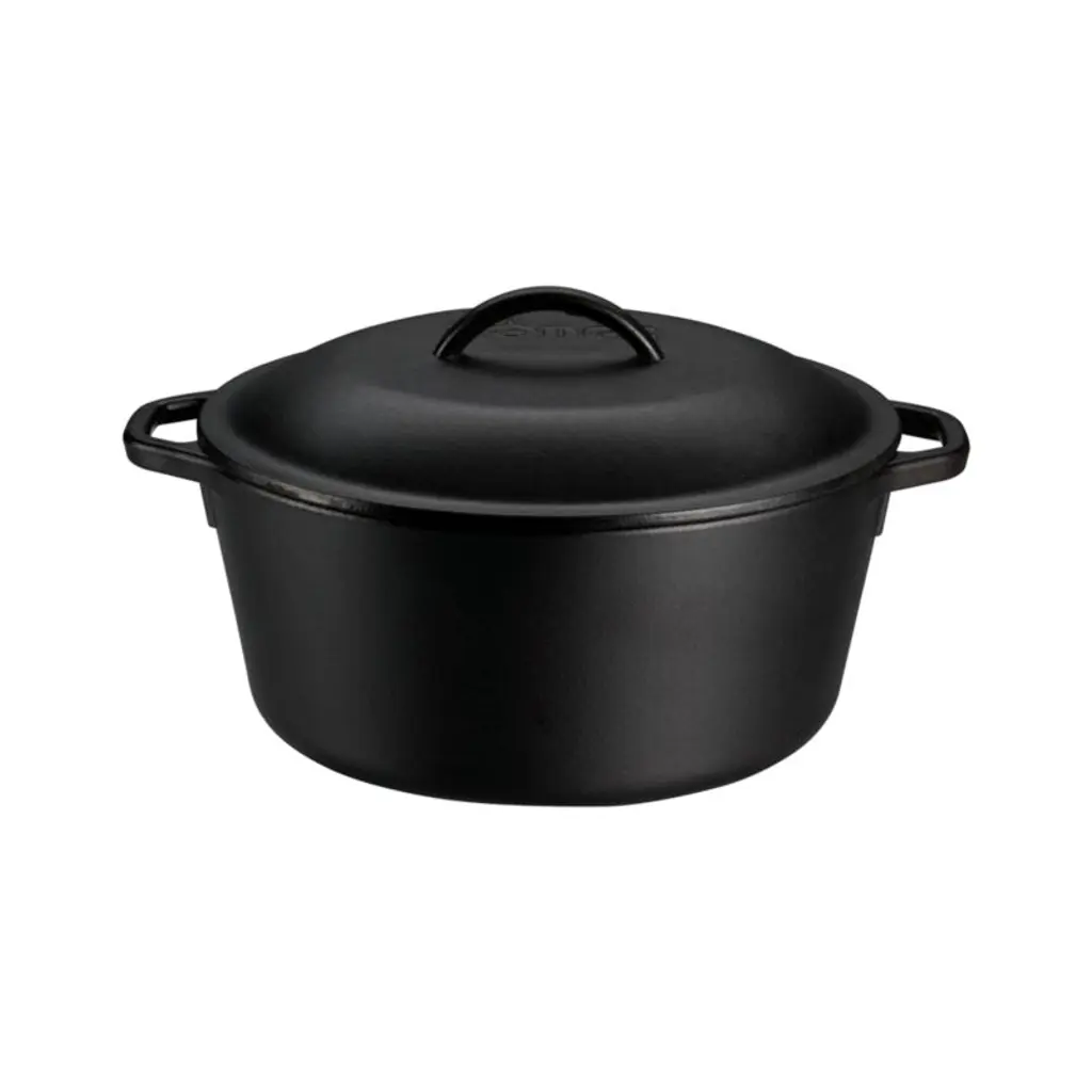 Grandma was on to something with timeless cast iron, preferred by many chefs for its durability and superior heat retention. Ready-to-use pre-seasoned Lodge Dutch oven gives that homespun cast-iron appeal and solid performance for stovetop or oven braises, stews, casseroles and other one-pot favorites. Because of its extremely high heat retention, cast iron is a versatile material that can be used on almost any heat sourceeven over a grill or campfire. From pan-fried fish to cornbread, and pizza to bacon and eggs, cast-iron skillets, griddles, pans and woks cook up an outdoor feast. This heavy-duty cookware serves up sides, too.Each piece of Lodge cast iron cookware is backed by the company's 120 years of experience. View all Lodge products