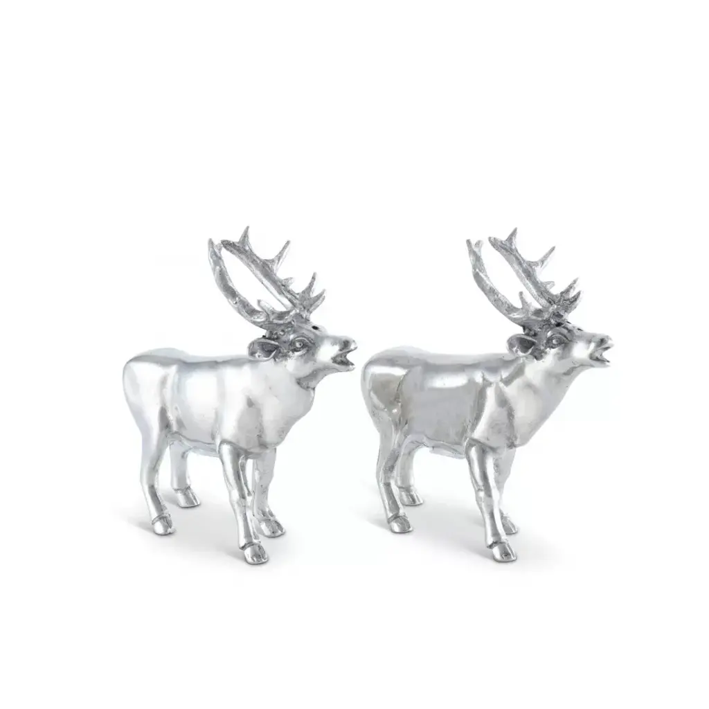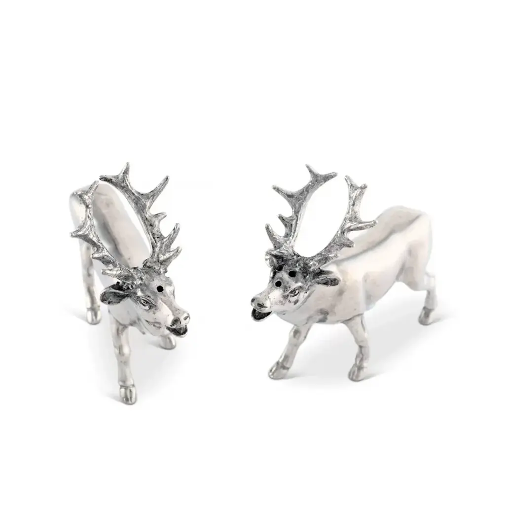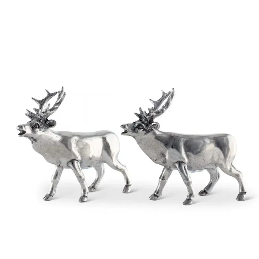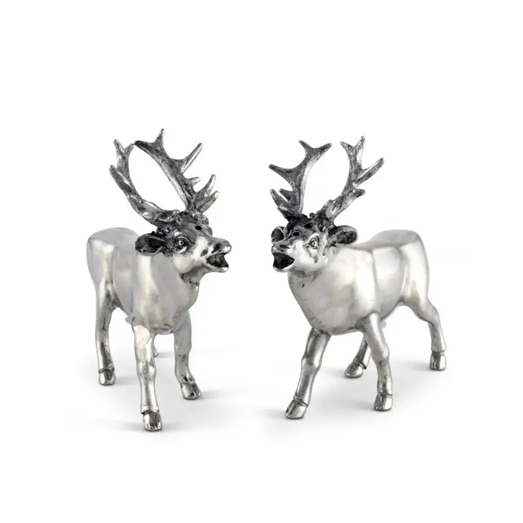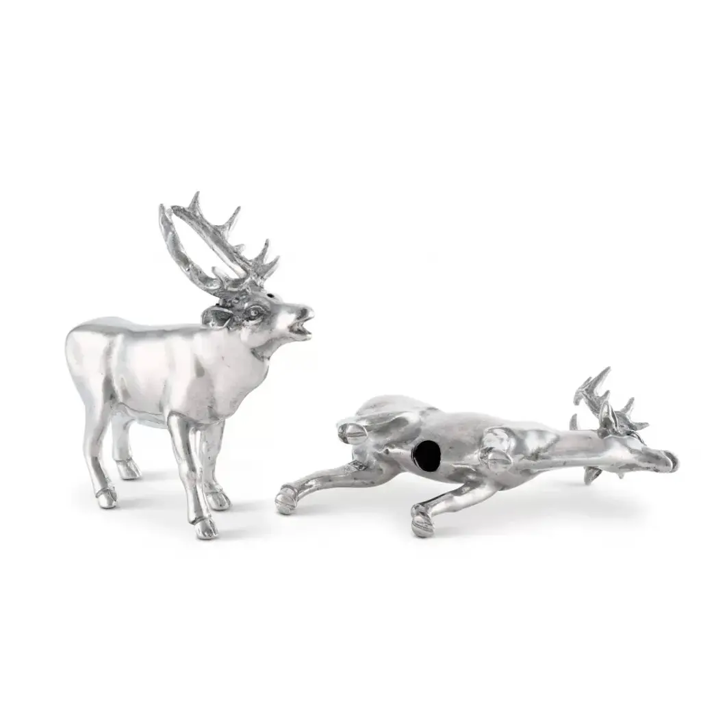Table accents with the natural style of Mother Nature and her wild beasts, Vagabond House's Deer Salt and Pepper Set are loved by the outdoorsy set. Crafted in luxury-grade pewter, these Deer feature full racks of antlers, defined hooves and spirited faces. Vagabond House is a family-owned American company specializing in fine pewter tableware, servingware and giftware. Largely inspired by nature, their exclusive products are designed to be unique, functional heirlooms for those who seek to express tradition and style in both family and formal entertaining.