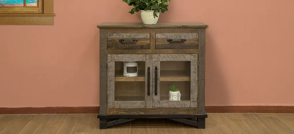 The Loft Brown Server is constructed using 100 percent solid Pine Lumber that has been hand stained and distressed with Restoration hardware. This beautiful Collection features many highs and low finish colors making it a striking addition to any room decor you choose to design.