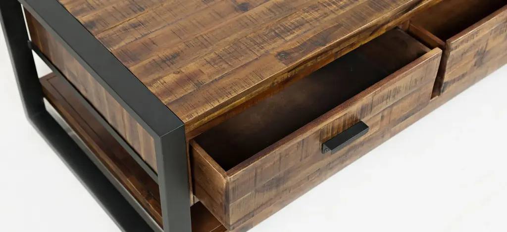 The Loftworks Coffee Table with drawers will bring industrial flair into your home without overstating it, by adding warm, distressed wood paired with steel legs and accents.