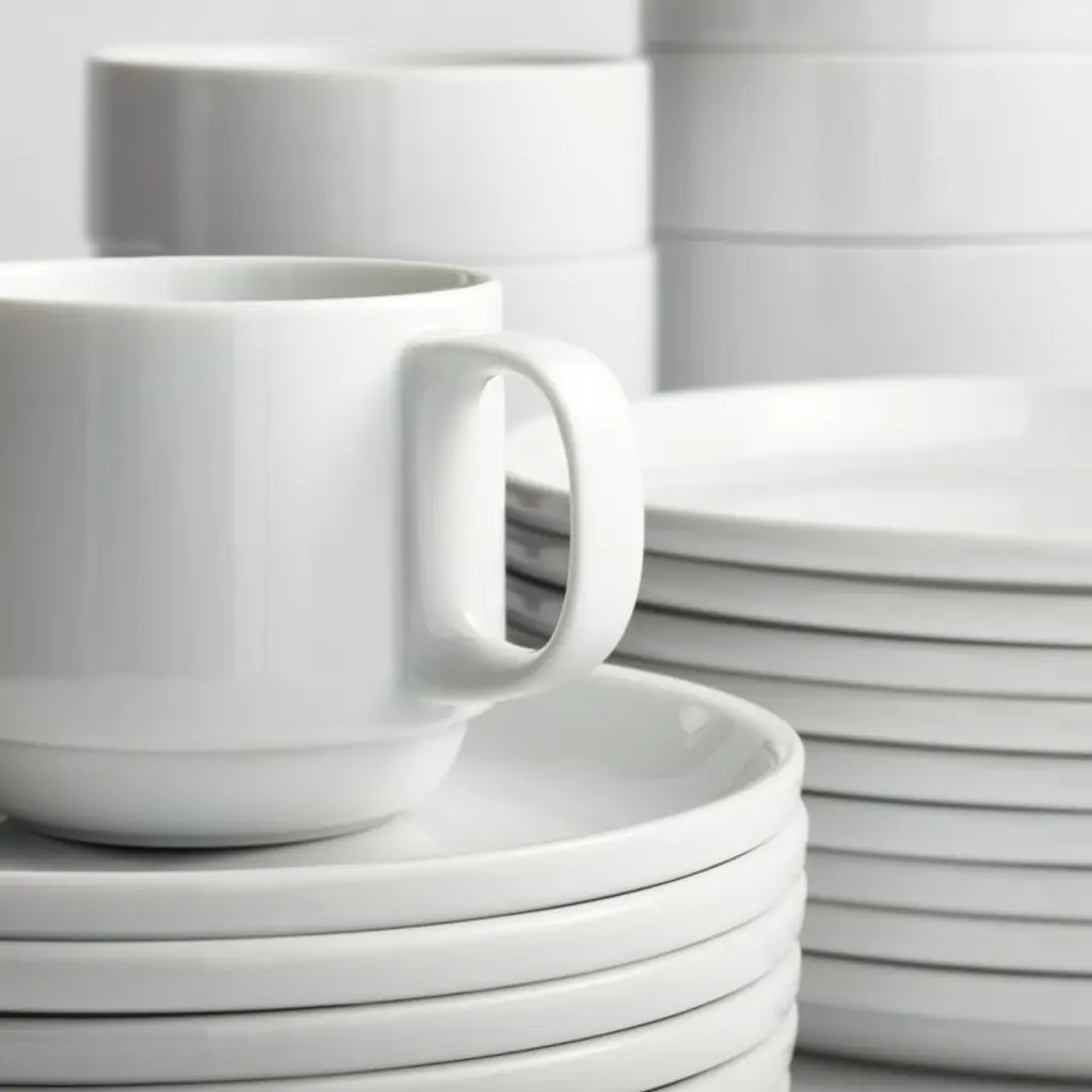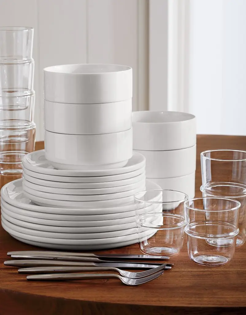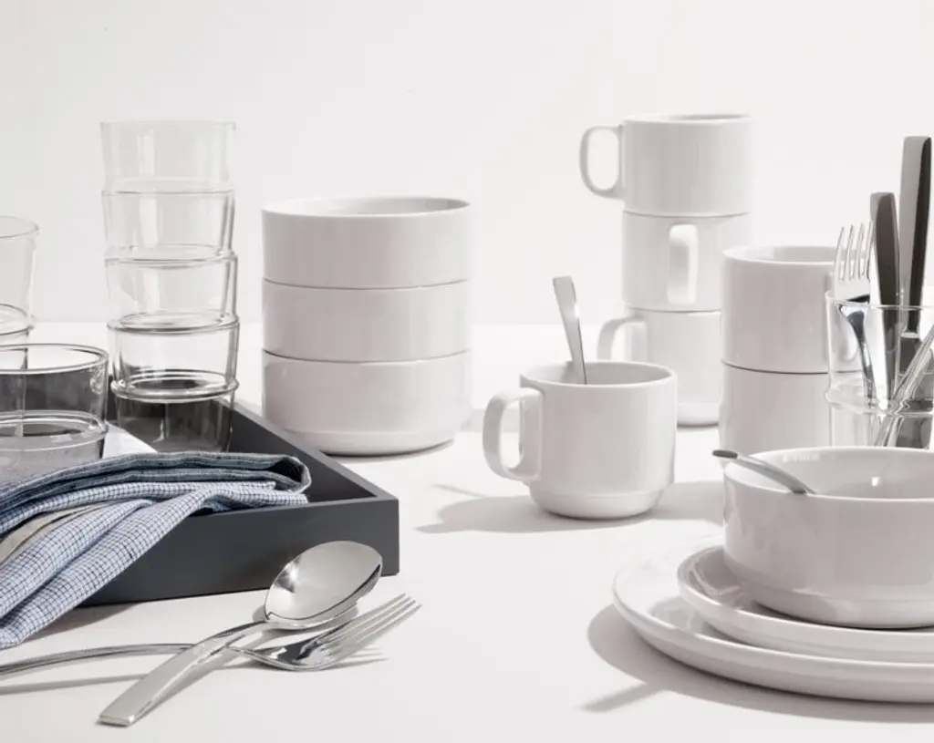 Designed to stack, Logan dinnerware makes the most of kitchen storage with a modern, classic look that segues from casual to elegant. Martin Hunt masterfully mixes function and form in clean, streamlined shapes of durable porcelain.
