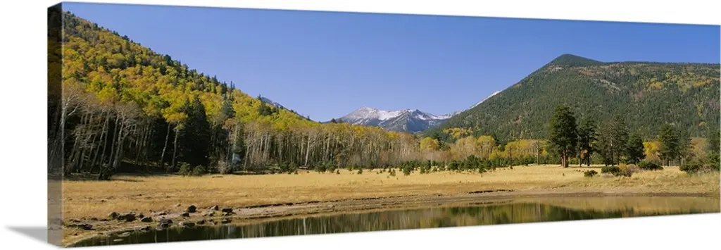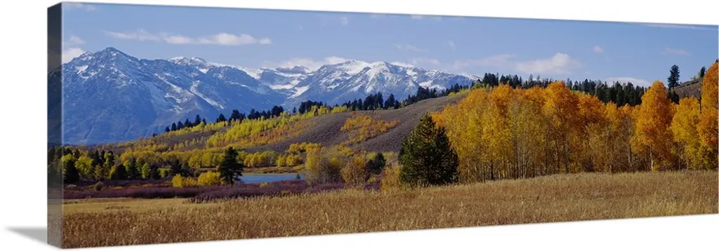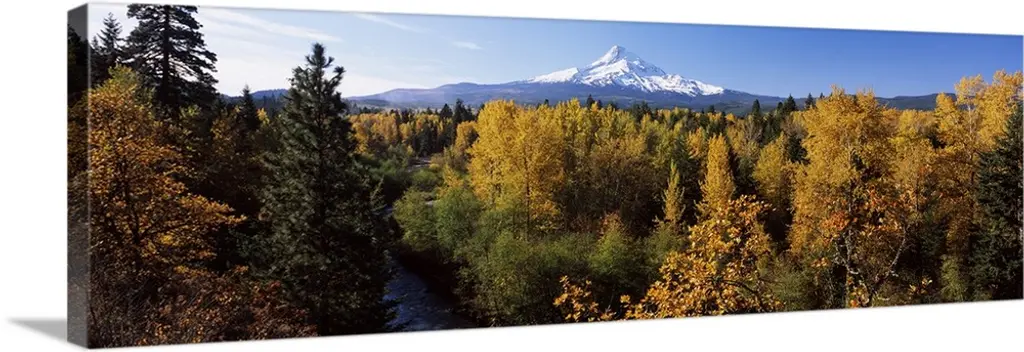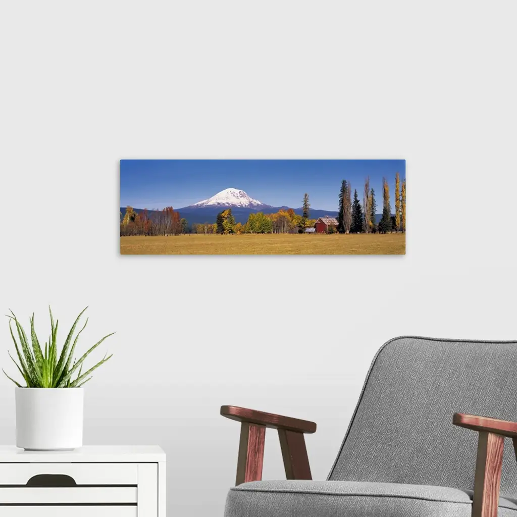 USA, Washington State, Mt Adams. Lombardy poplars and aspen trees take on fall colors on a farm near Mt. Adams in Washington State.