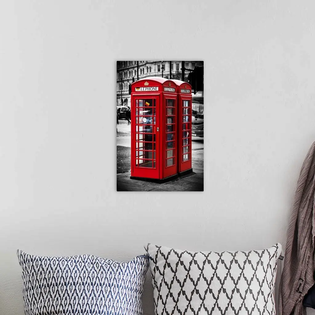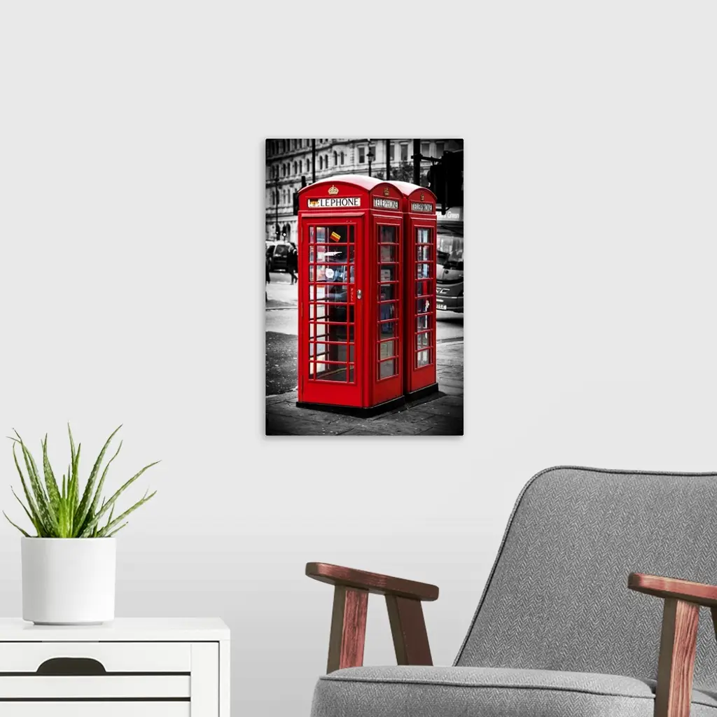 Fine art photo of a red Telephone Booth in London, England, with selective coloring.