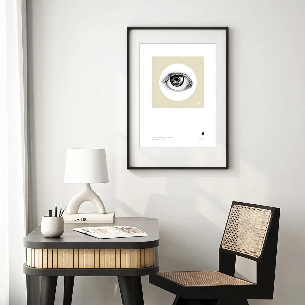 'London Eye Series - I C U - L D N - Beige' - Limited Edition Print offers a fresh perspective on the city's beauty, inviting viewers to explore London in a new light. Whether you're a native Londoner or a curious traveler, this piece is a visual journey through the heart of one of the world's most beloved cities.Each intricately detailed landmark, from the majestic Tower Bridge to the historic Big Ben and of course the London Eye, is delicately woven into the fabric of the eye, creating a fascinating tapestry of urban wonder. As you gaze upon the ink strokes, let your imagination soar as you uncover hidden gems and familiar sights nestled within the eye's pupil.What can you see?Hint:Look for the London Skyline in the pupil of the eye.Limited 1st Edition of 100.